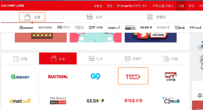 충전을 완료하셨으면 꼭 컬쳐랜드 내에서 11번가로 접속합니다.