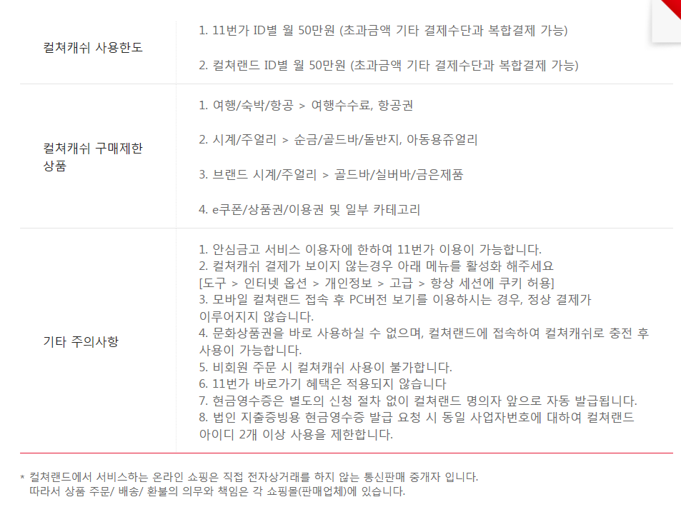 먼저 11번가 내에서 사용할 수 있는 캐쉬의 한도와 구매제한 상품, 그리고 주의사항들을 확인해 주세요.