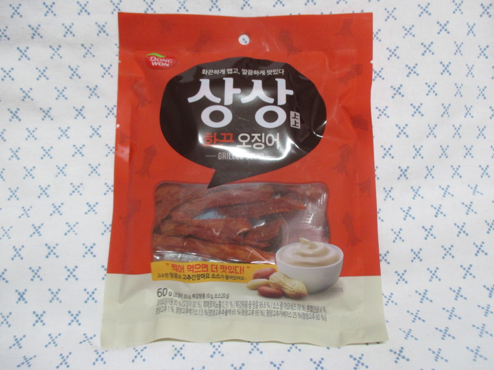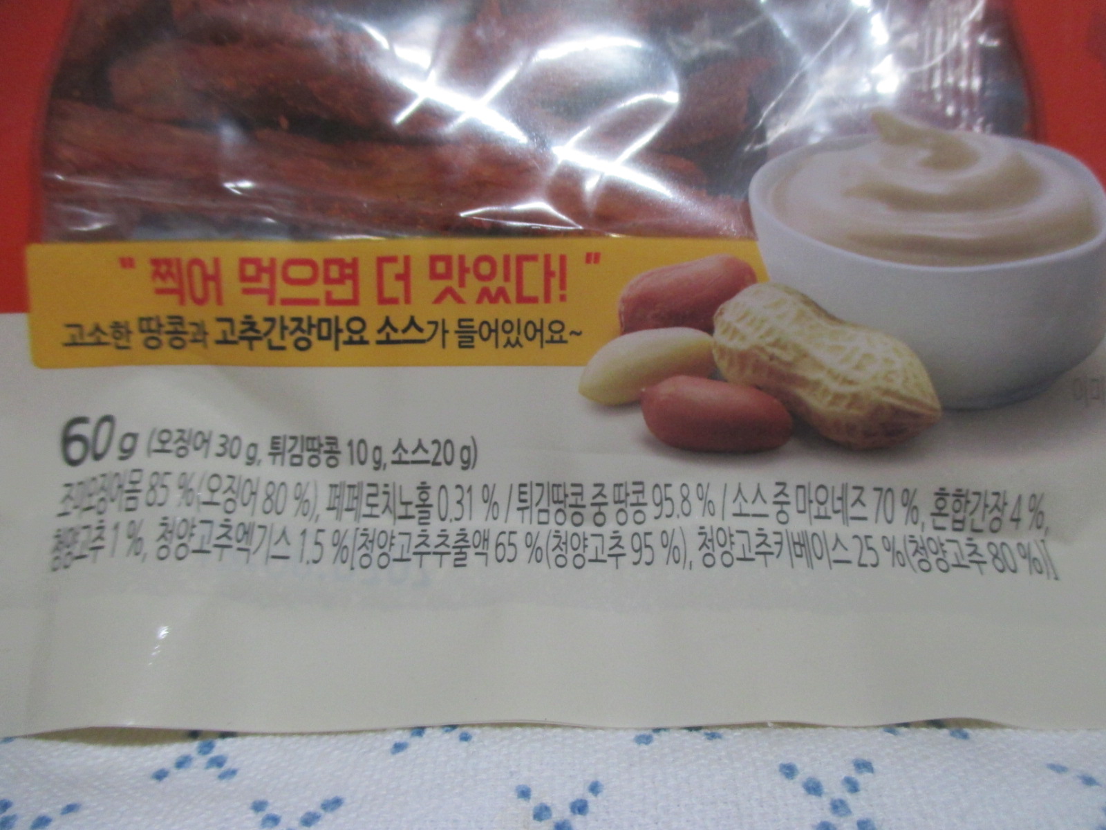 오징어 30g, 튀김땅콩 10g, 고추간장 마요소스 20g , 해서 60g인 것!