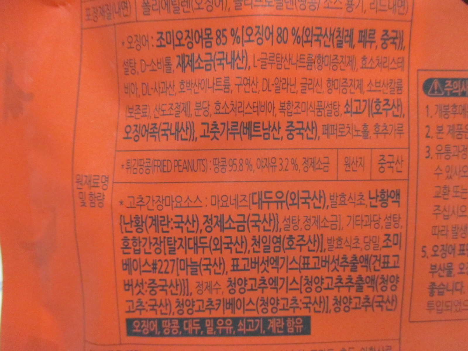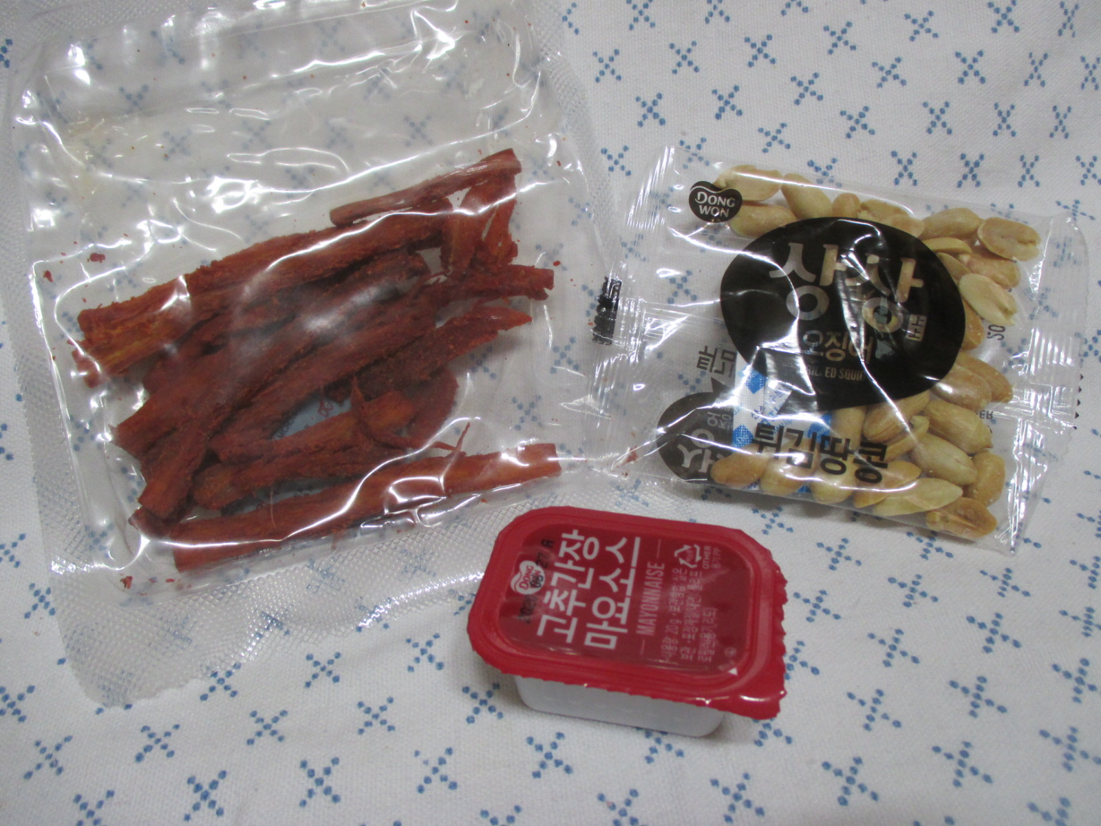 얼핏 보고 오징어만 든 줄 알았고만 뜯어보니 땅콩이랑 소스도 들어 있어 놀랐다.
