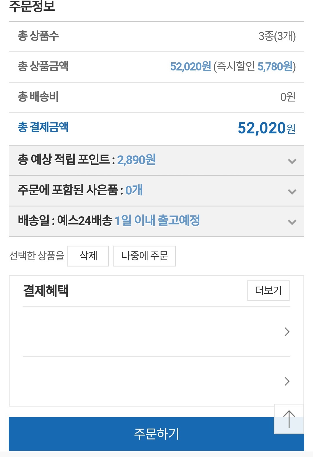 앱 첫 화면에서 '혜택모음'으로 들어가셔서 사용 가능한 할인 쿠폰(상품권)이 있는지 꼭 확인하세요.