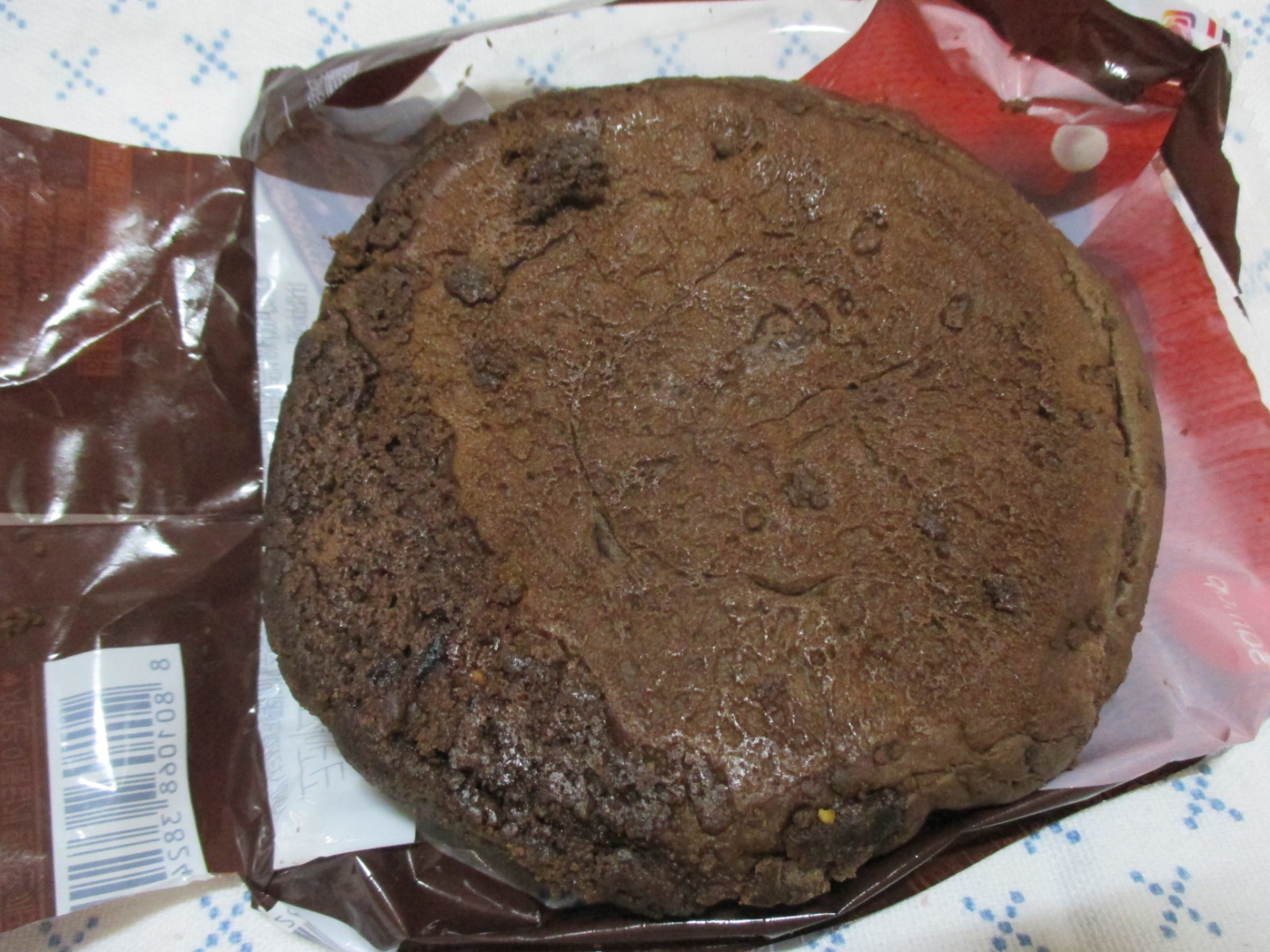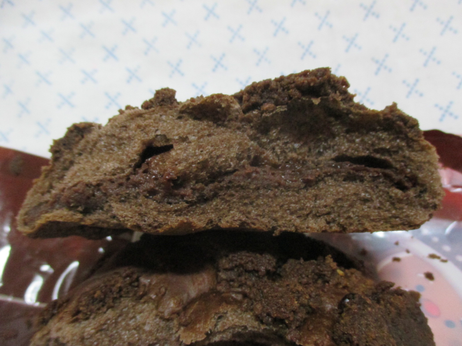 코코아 소보루답게 색은 짙은 초콜릿 색이고, 위에는 초코 토핑이 가득 얹어 있다.