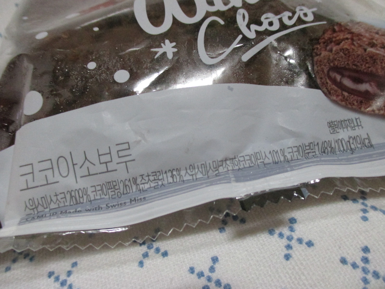 지난 번에 먹은 코코아 꽈배기 하나만 나온 줄 알았더만, 코코아 소보루, 코코아 롤케익도 있더란.