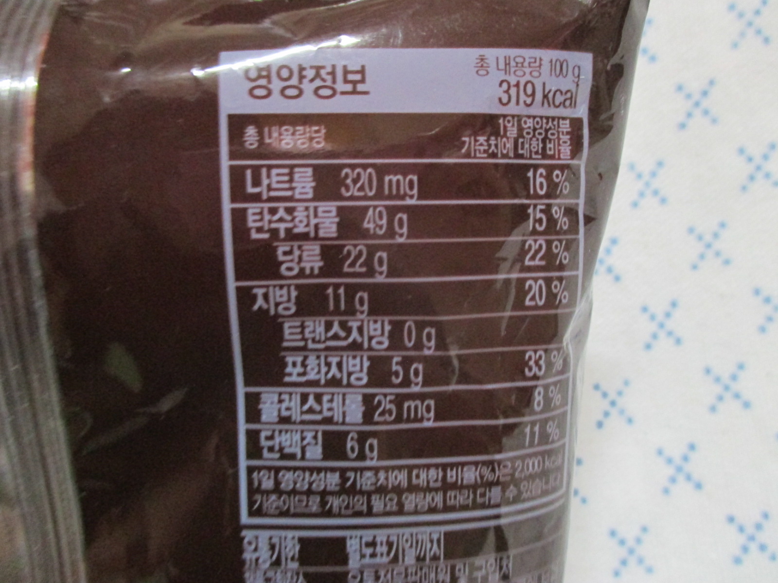 보다 자세한 영양정보와 원재료명은 위 이미지 참고 바람.