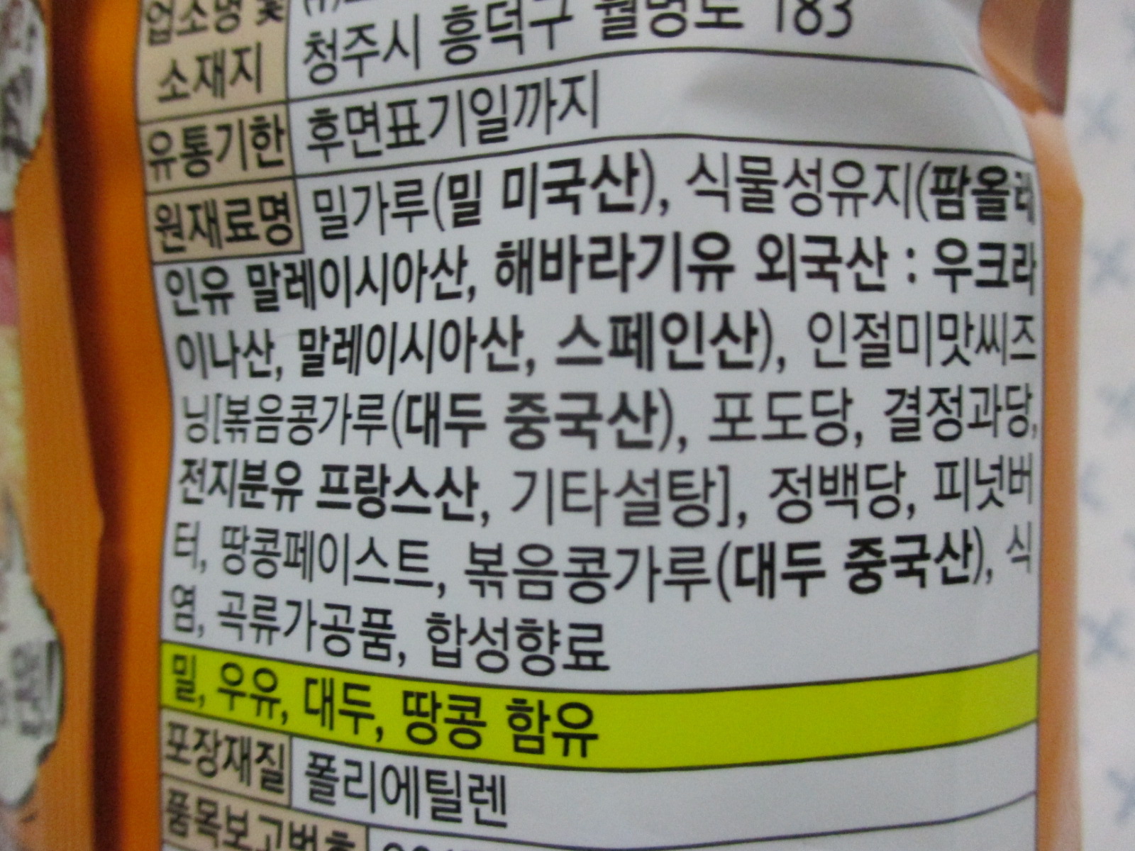 보다 자세한 영양정보와 원재료명은 위 이미지 참고 바람.