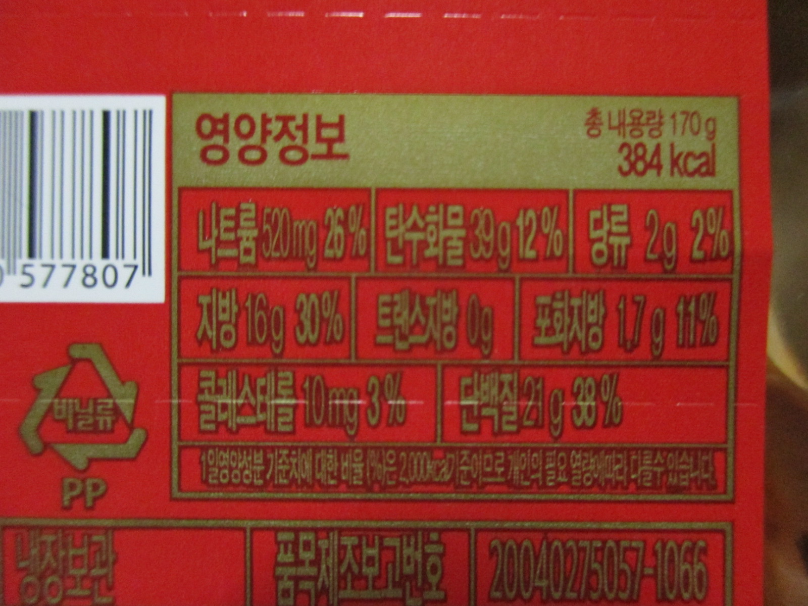 보다 자세한 영양정보와 원재료명은 위 이미지 참고.
