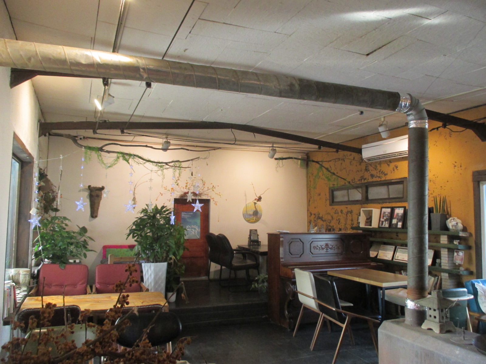 밖에서 봤을 때도 산장 느낌이 들었는데, 연통 때문인지 내부도 산장 느낌이 났다.