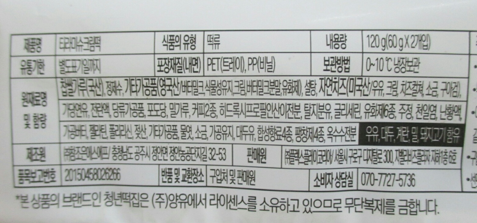 원재료는 국산 찹쌀가루와 영국산 기타가공품, 미국산 자연치즈 등이 함유되었다는데, 자연치즈가 마스카포네 치즈를 말하는 걸까?