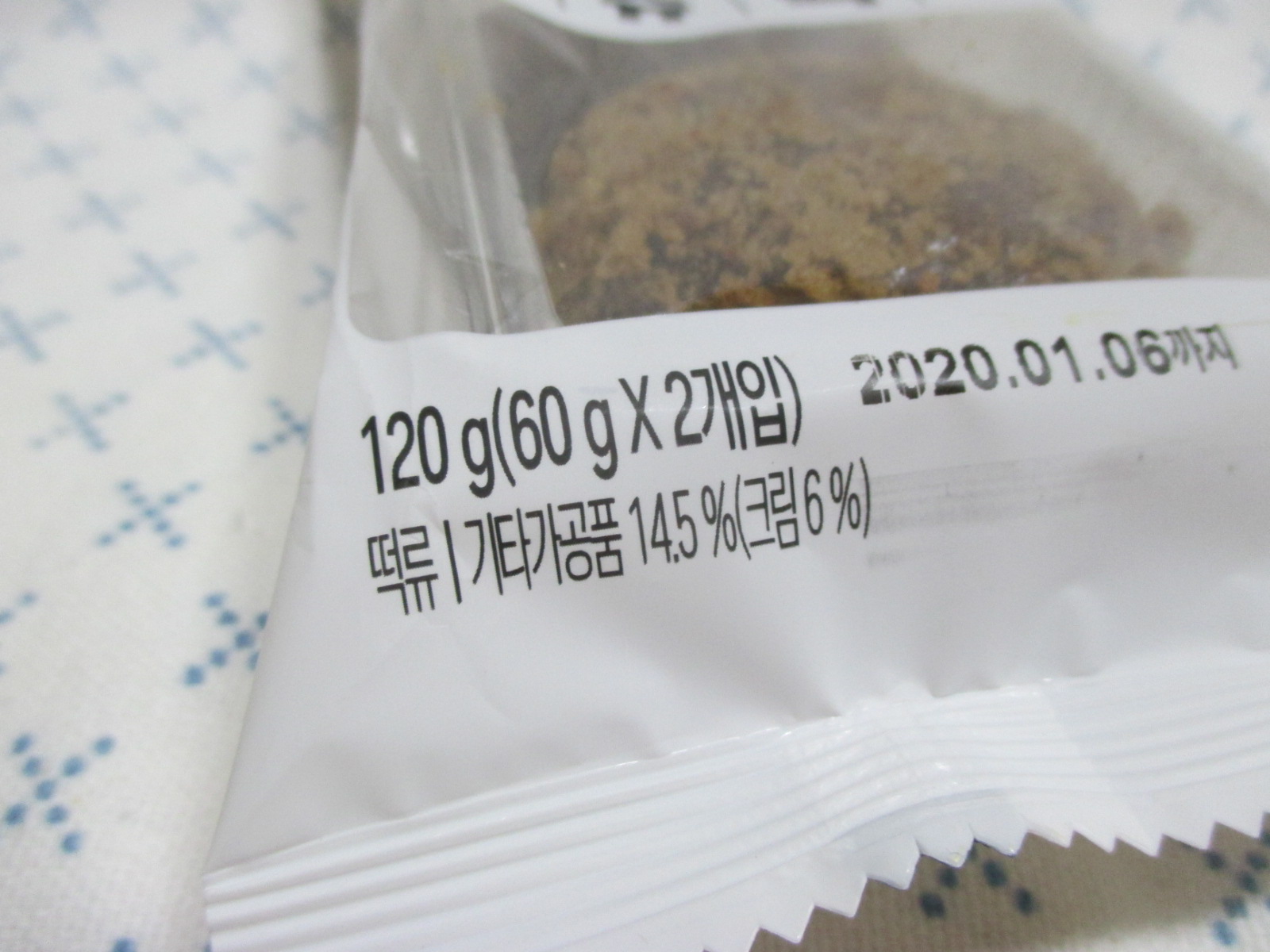 앞서 말했듯 씨유의 티라미슈 크림떡은 인터넷과 코스트코에서 파는 것과 달리 개당 중량은 60g으로 2개가 들었다.