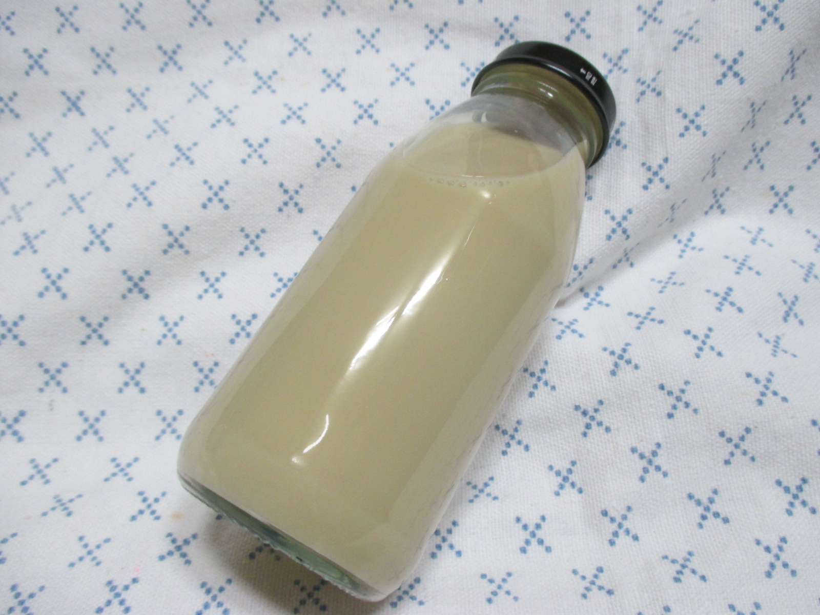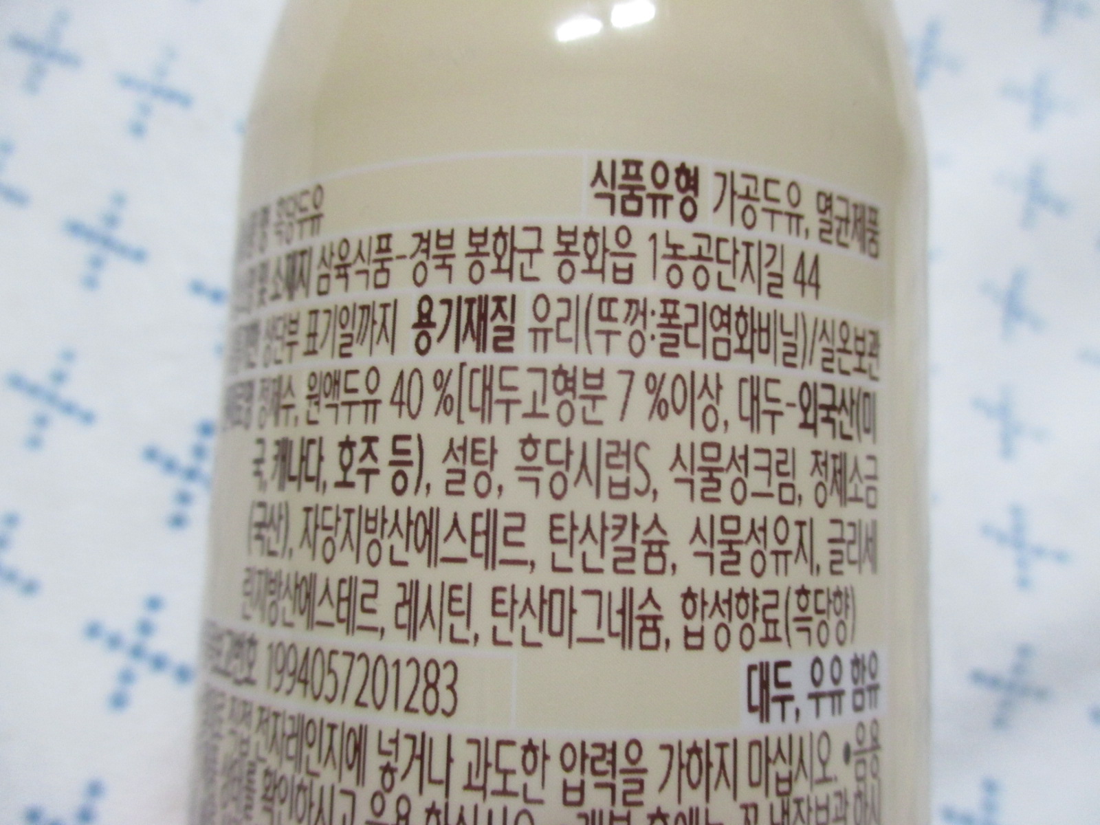 유리잔에 따르는 대신 두유의 색이 온전히 드러나도록 병에 입혀진 필름(?)을 뜯어냈어요. ㅋ