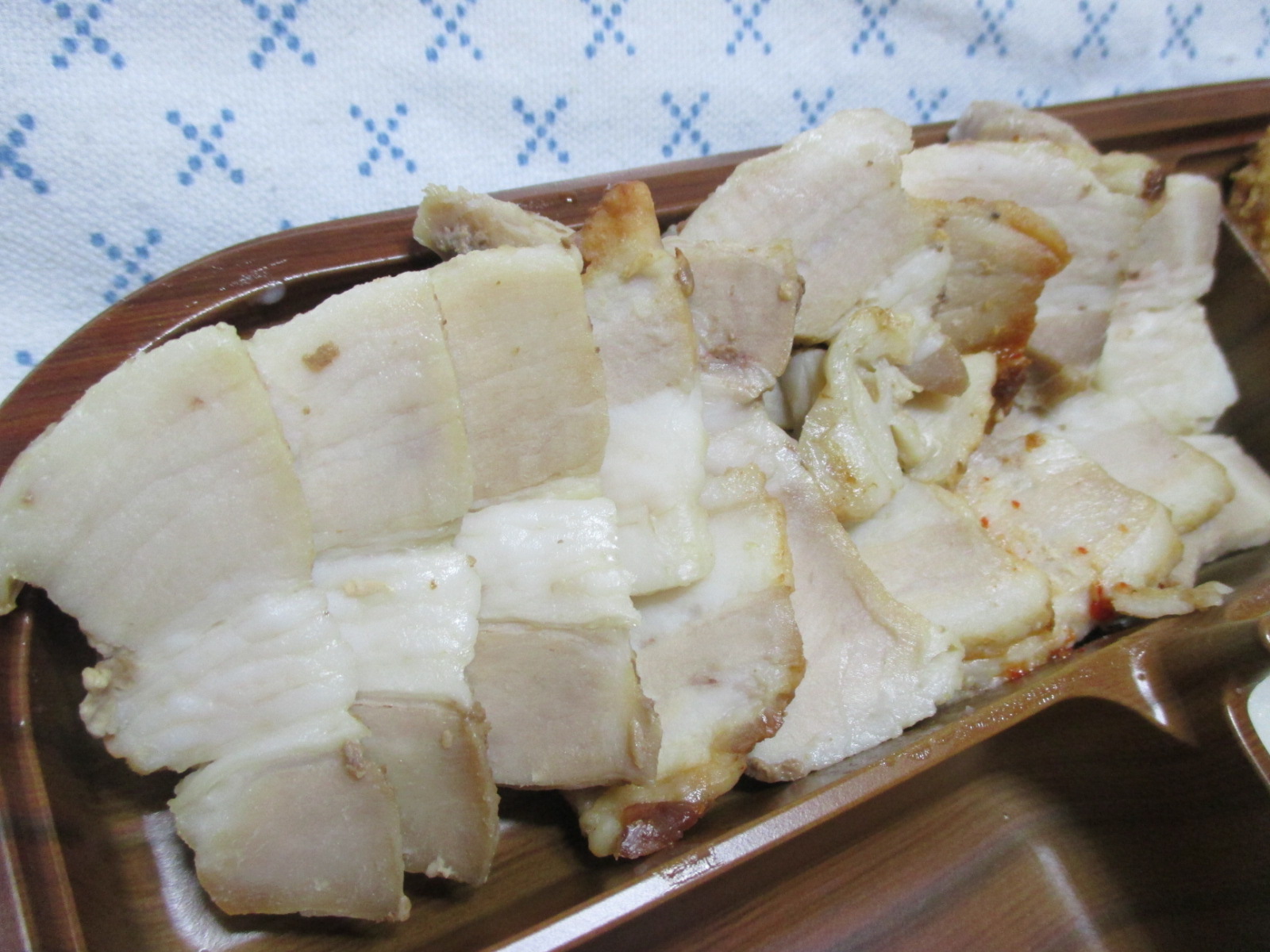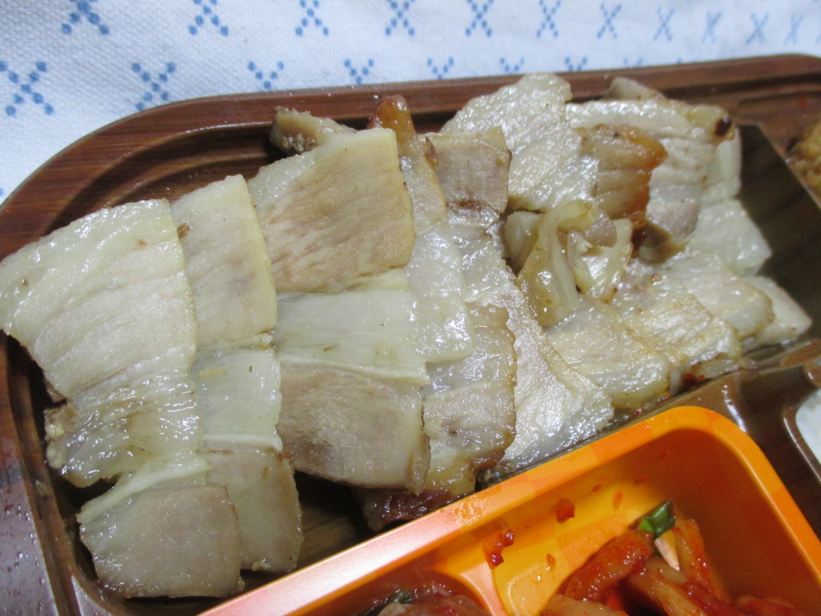 그리고 보시면 아시겠지만, 전자레인지에서 데워진 게 아니라 구워져서는 수육이 아니라 구운 겹살이 느낌이었어요.