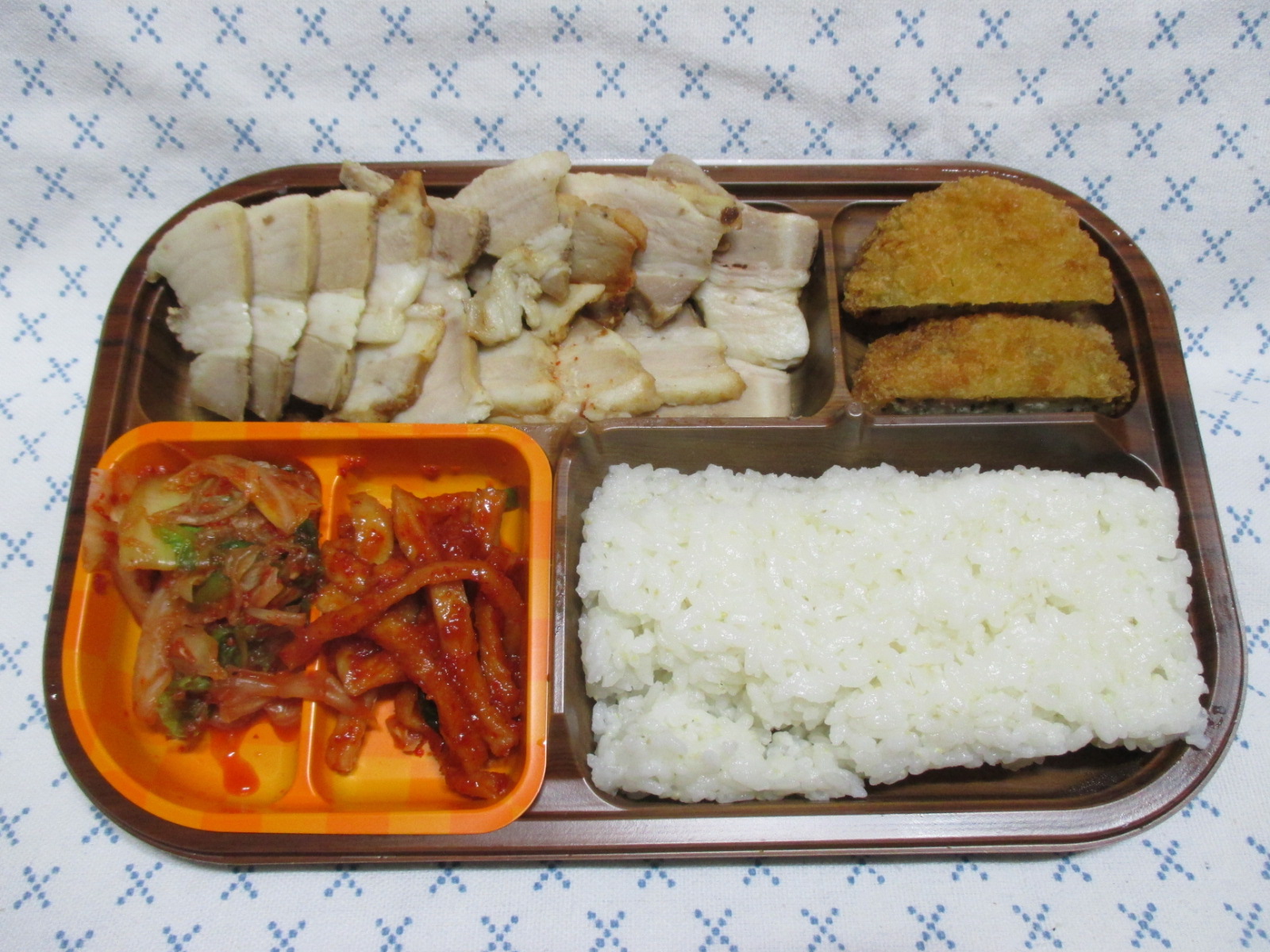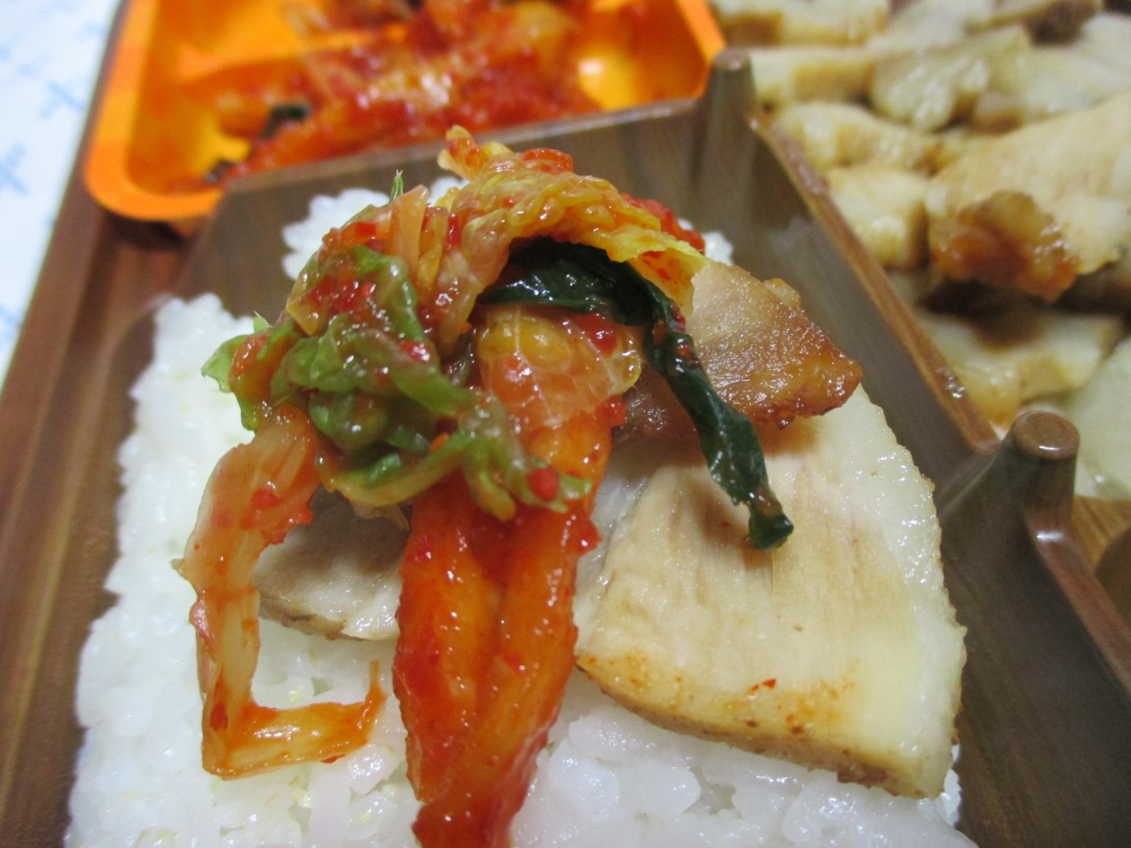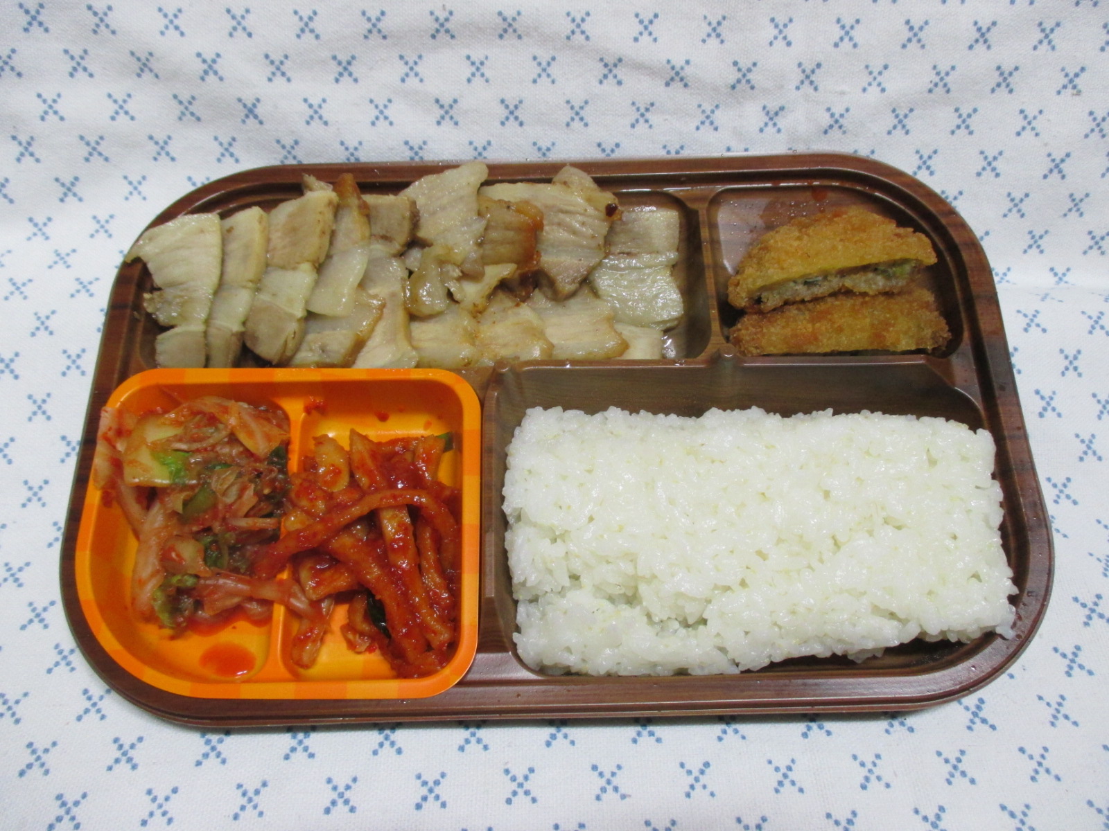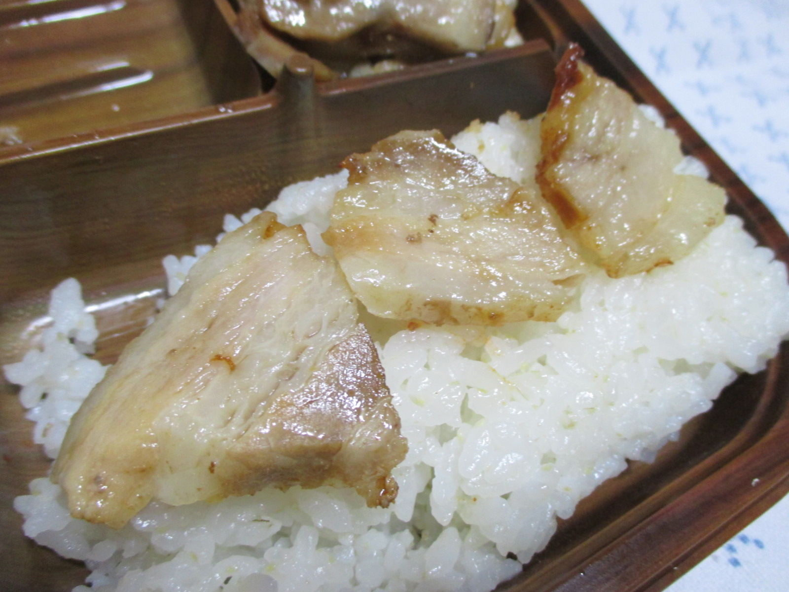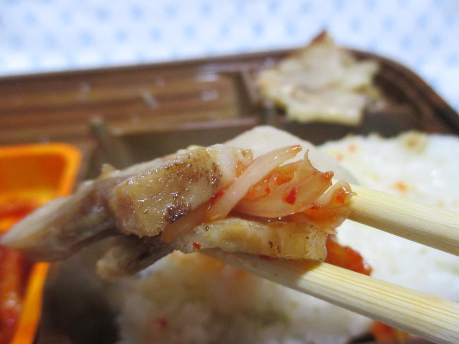 밥은 좀 진 편이었고, 다른 도시락에 비하면 양이 조금 적은 느낌이었는데, 겹살이와 만두소카츠랑 함께 먹으니 딱 적당했어요. 개인적으론 오히려 한, 두 숟가락 덜 들었음 딱 좋았겠다 싶었어요.