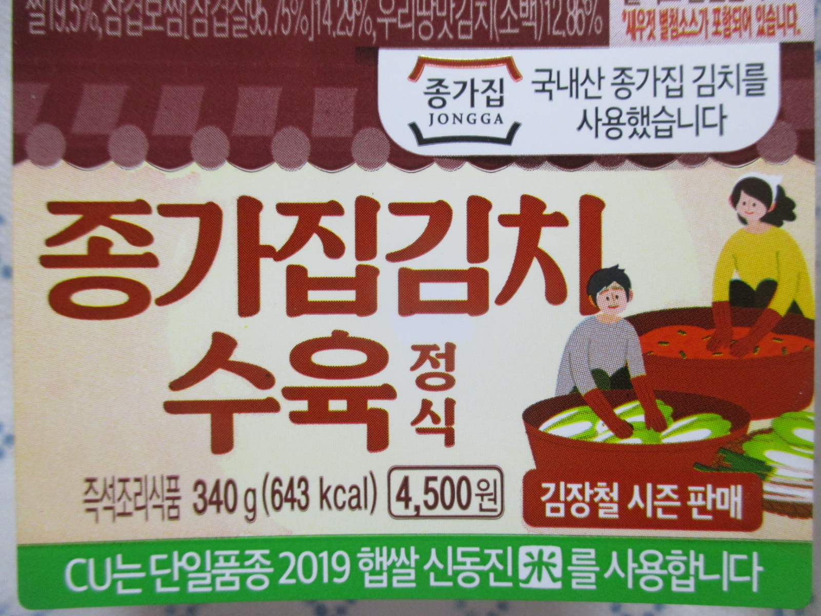 긴 공백기를 깨고 이번에 구매한 도시락은 CU의 '종가집김치수육정식'이에요.