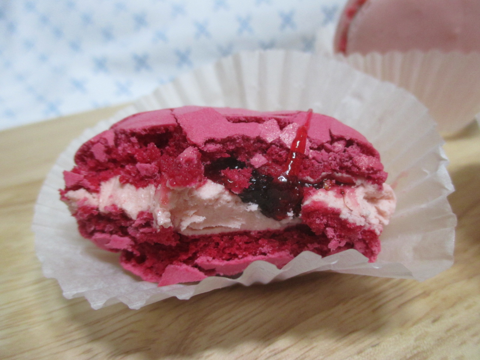 먼저 꼬끄 색이 가장 진한 아이부터 먹어 보았는데, 지난번에도 느꼈지만 쫀득한 마카롱이란 이름에 걸맞게 꼬끄가 정말 쫀득쫀득했어요.