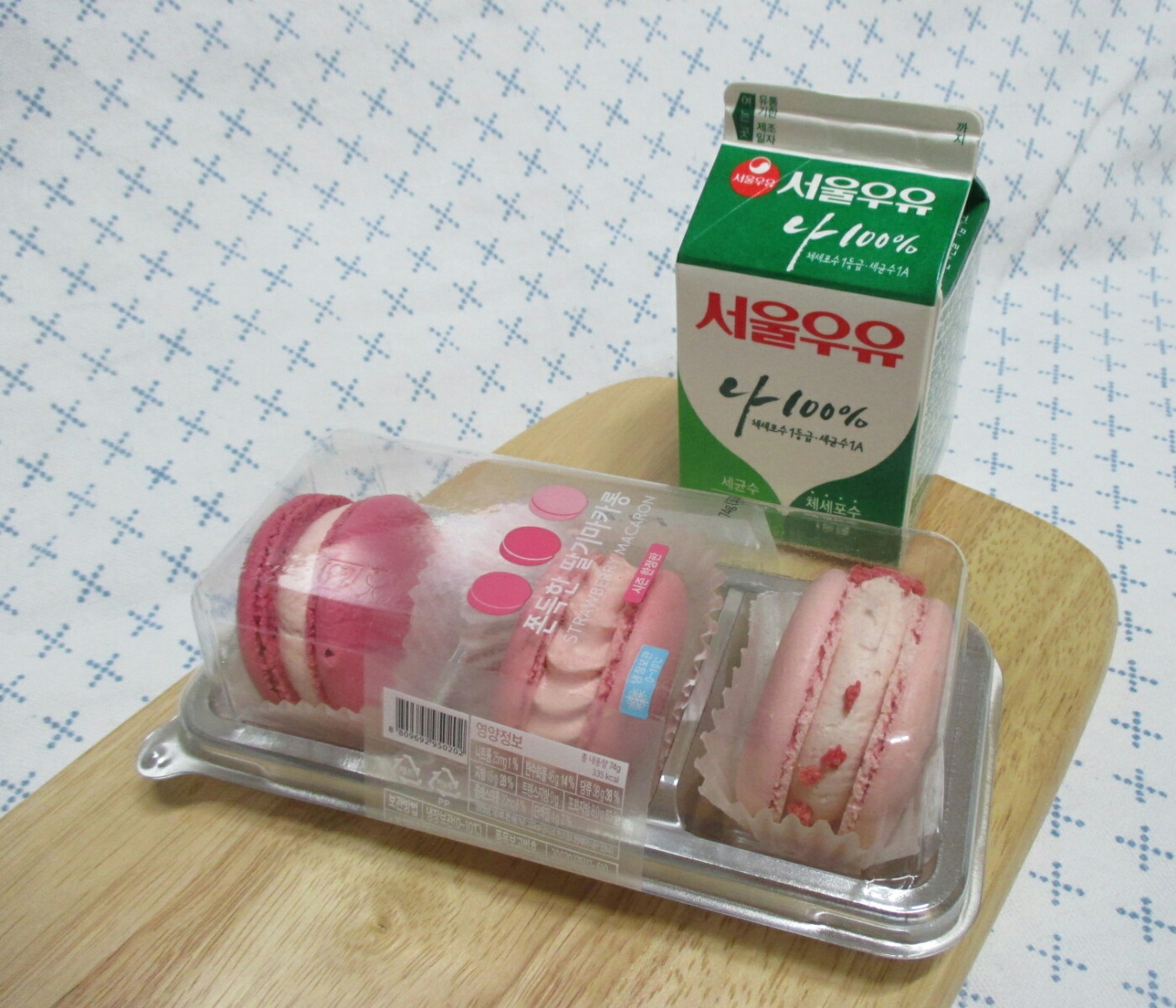 지난번에 쫀득한 마카롱 1탄 먹어보고는 앞으론 어떤 마카롱 시리즈도 절대 안 먹겠다 했으면서 한정판 딸기 마카롱이라니까 괜히 욕심나더라고요.ㅋㅋㅋ