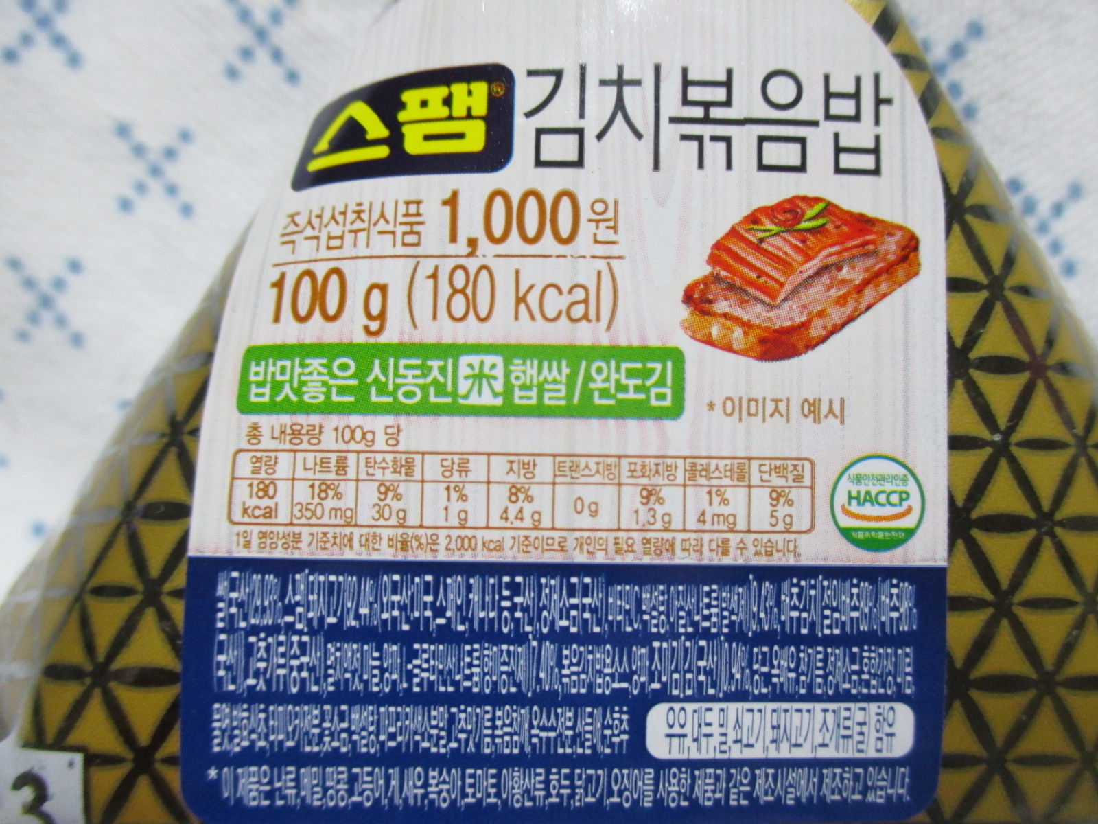 100g에 180kcal로 가격은 천원이다.