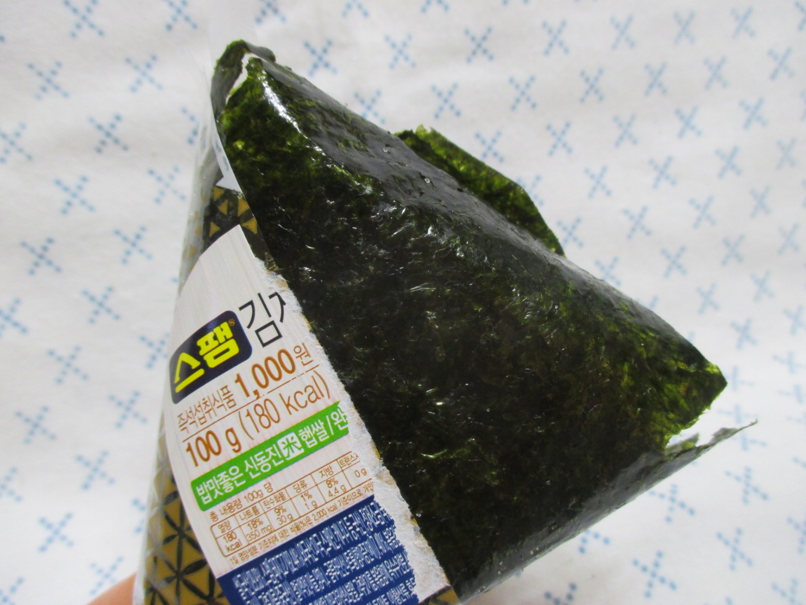 김이 비닐에 꽉 끼어서 잡아당기면 김과 밥이 분리되거나 김의 일부가 뜯겨 나옴.ㅜㅜ