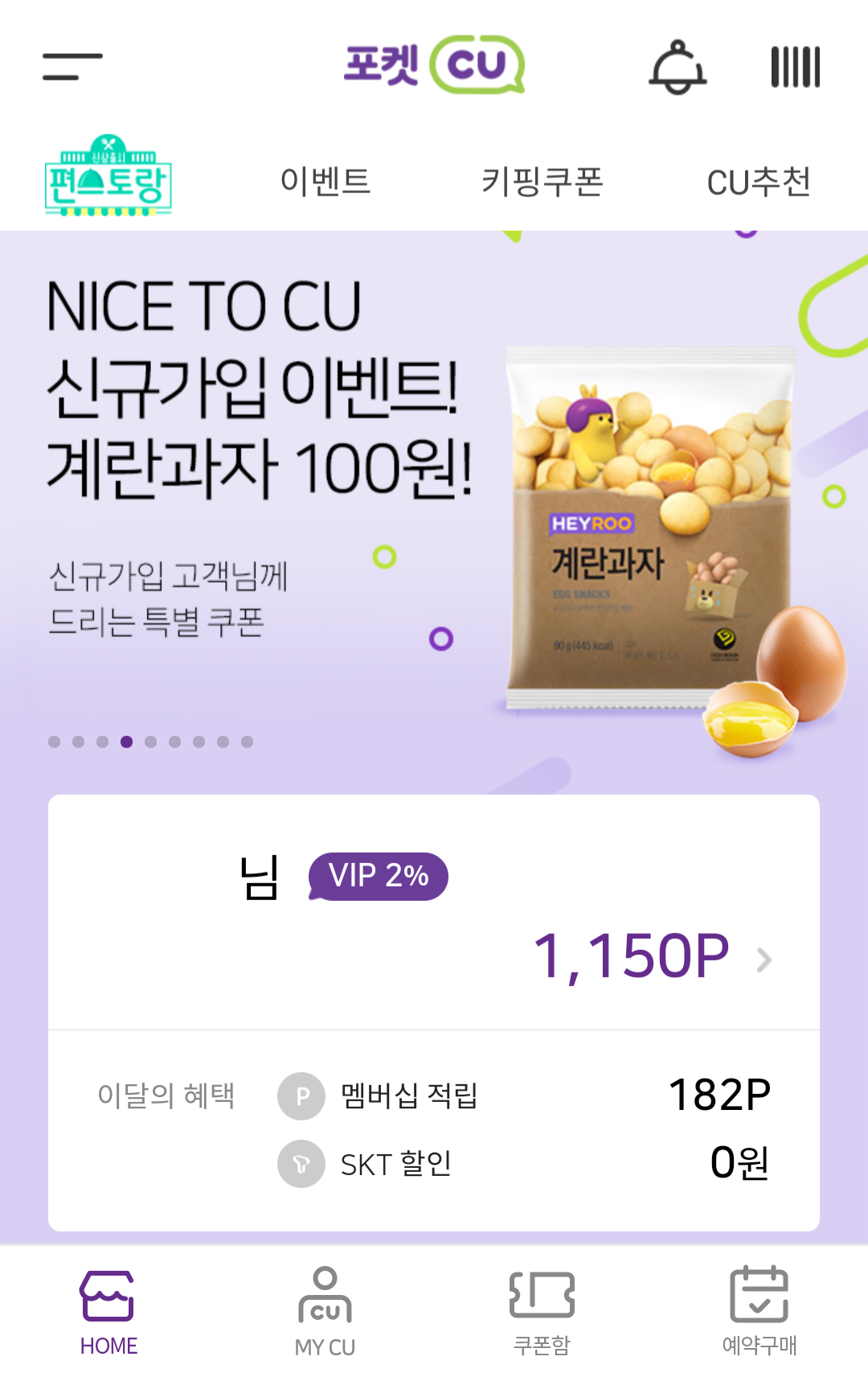 CU의 VIP가 되는 방법은 3개월 연속 3만원 이상 구매를 하시면 자동으로 VIP가 되십니다.