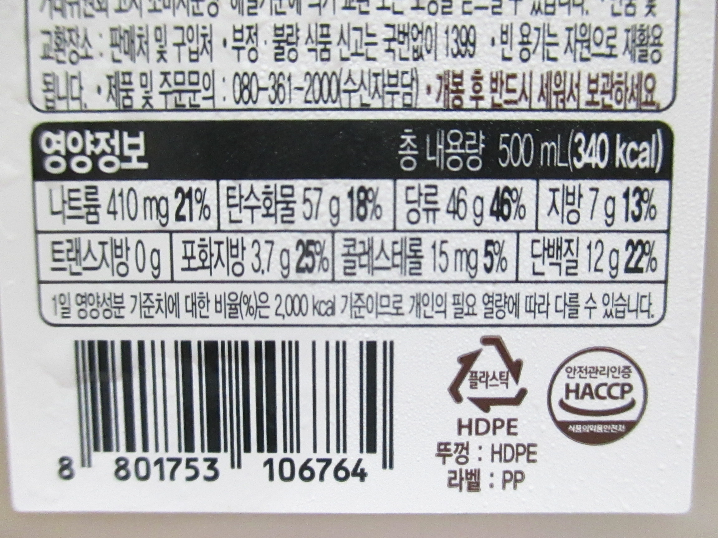 달고나 커피 우유의 총 용량과 열량은 500ml에 340kcal입니다.