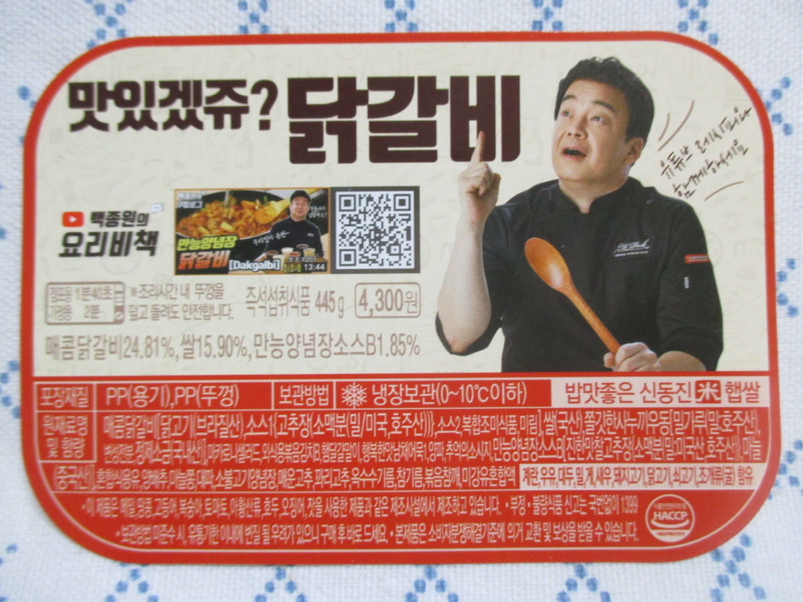CU 백종원의 요리비책 닭갈비 정식의 가격은 4,300원입니다.