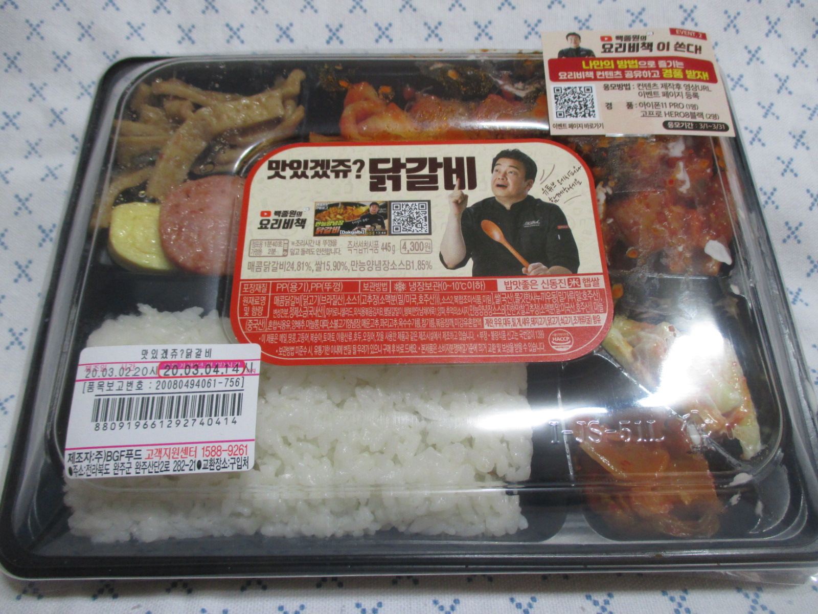 백종원의 요리비책 시리즈 닭갈비 정식 도시락의 구성입니다.
