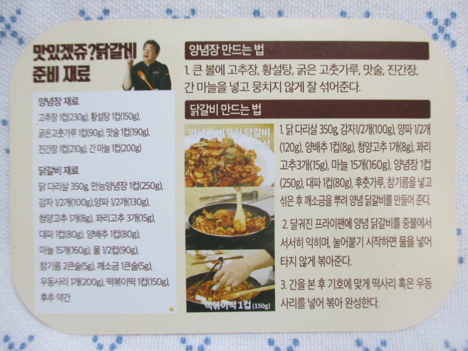 요러케롬 배종원의 요리비책에 나오는 닭갈비 레시피가 친절하게 쓰여 있거든요.