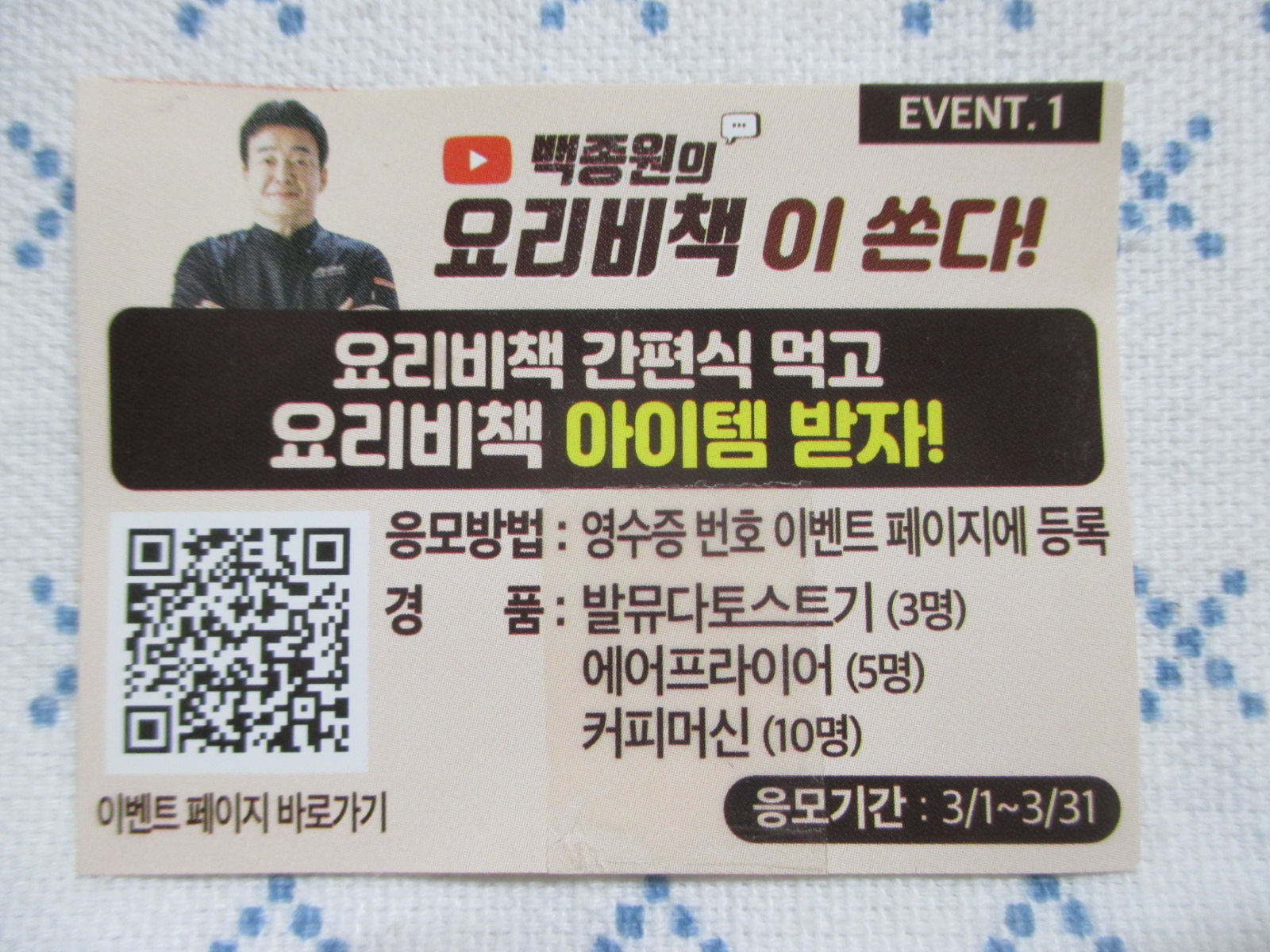 그리고 이벤트 기간 내에 받은 영수증으로만 응모할 수 있어요.(2월달 영수증 안 됨)