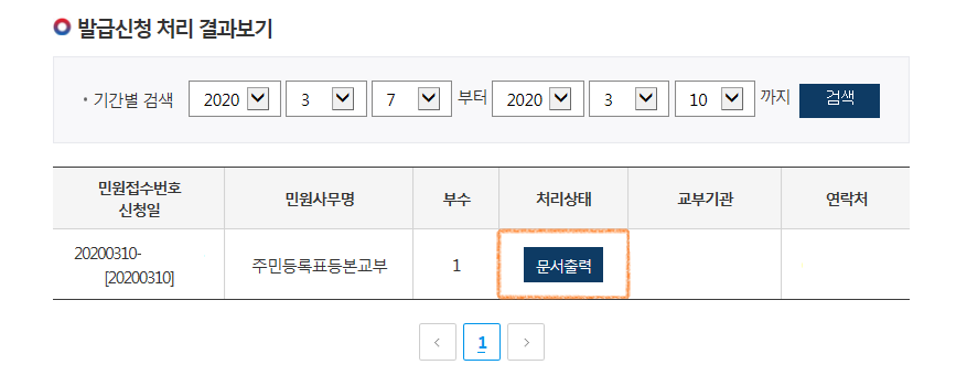 마지막으로 '공인인증서' 확인을 마친 후 위와 같은 발급신청 처리완료 화면이 뜨면, 프린터로 출력해 사용하시면 됩니다.