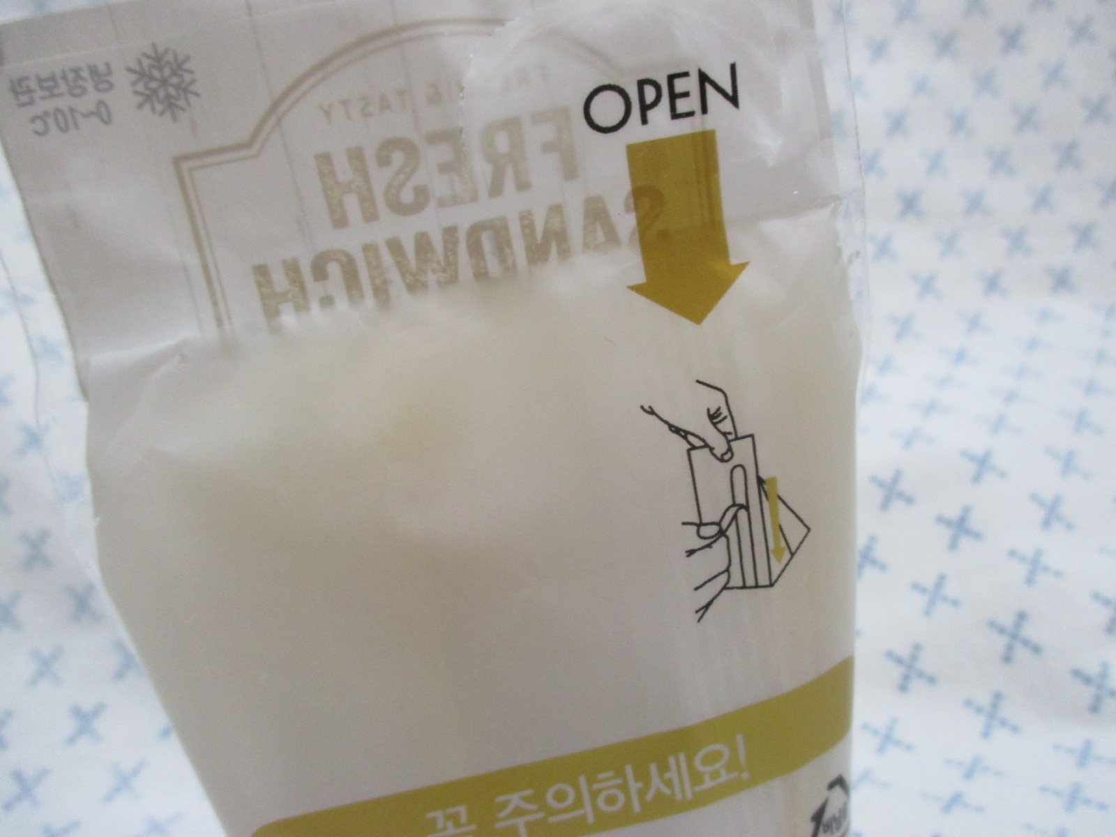 샌드위치 포장지는 뒤쪽에 OPEN이라고 화살표시로 되어 있는 띠를 제거하면 깔끔하게 벗겨내실 수 있어요.