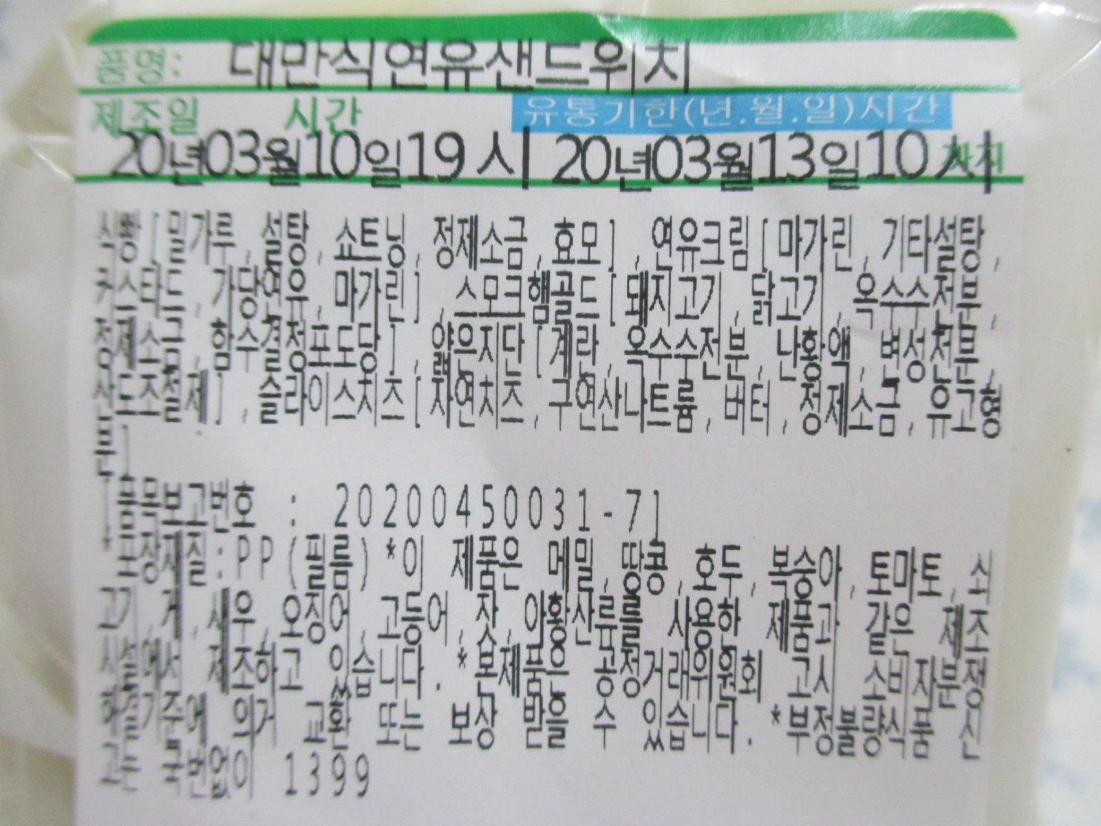 이 대만식 연유 샌드위치도 나온지는 좀 됐는데, 최근에야 맛을 봤네요.