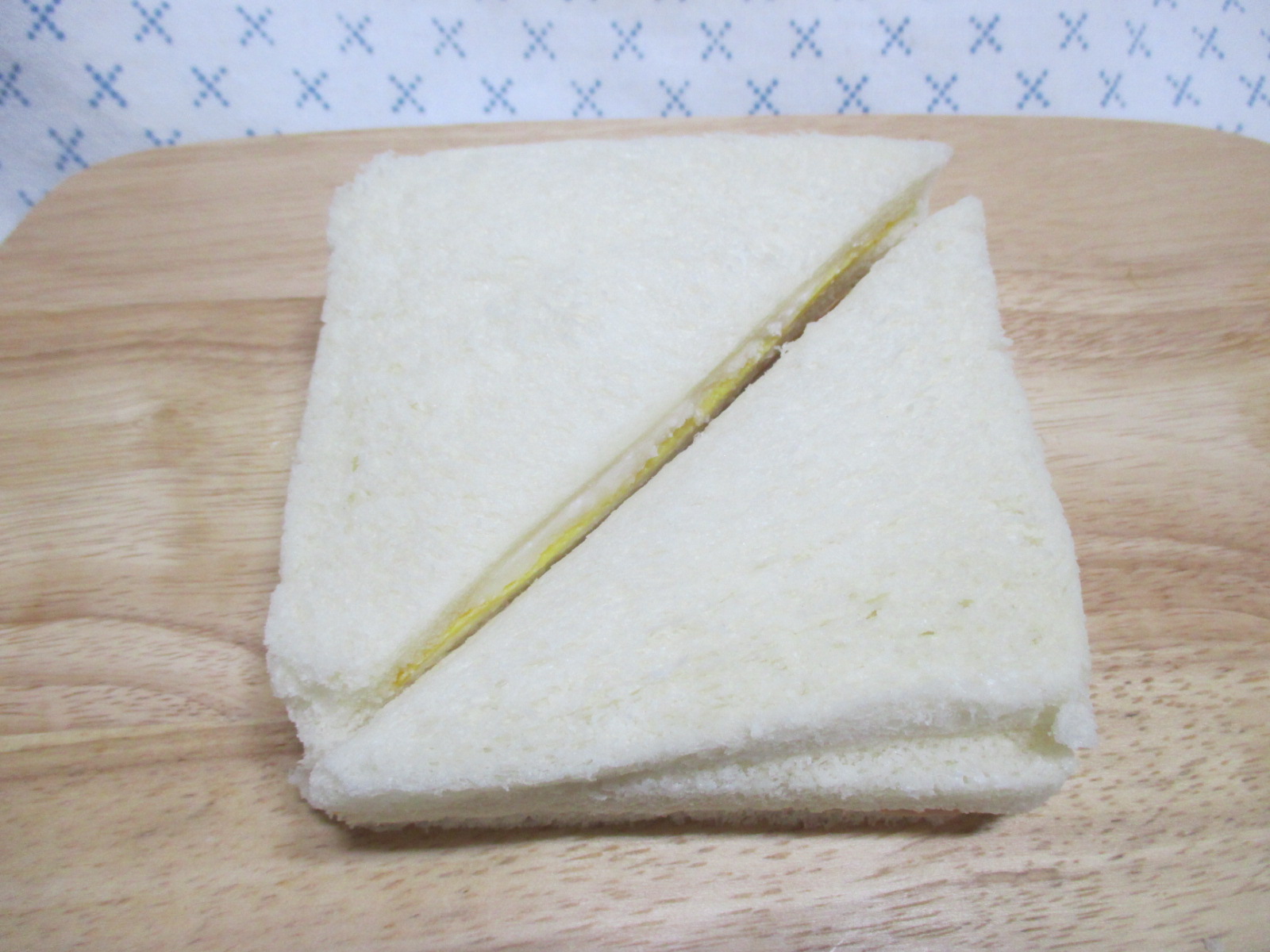 샌드위치에 재료가 들어간 걸 보면 재료는 같지만 조합이 다른데요, 이거는 가운데를 기준으로 한쪽에는 연유크림+계란지단이, 반대쪽엔 햄+치즈+연유크림이 들었어요. 재료는 같다지만 저는 이게 더 맛있었어요.