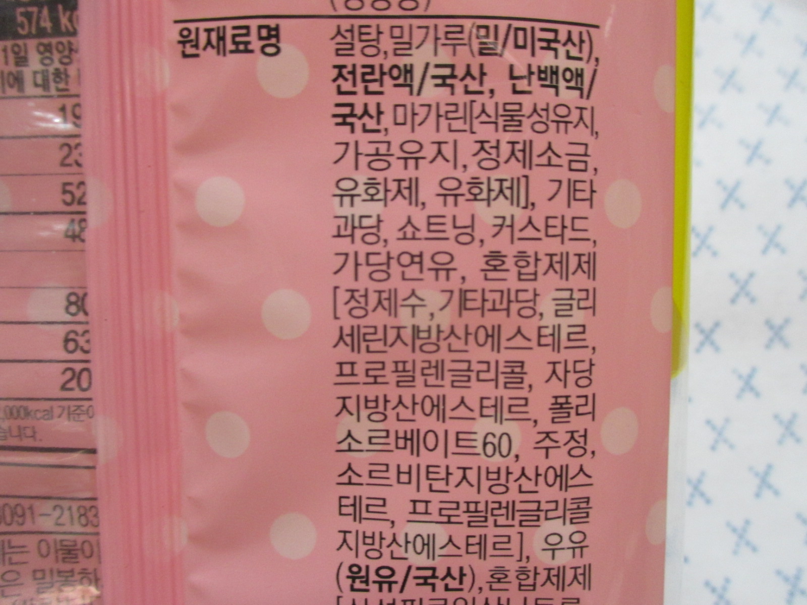 주재료인 우유는 0.99% 함유되었으며, 보다 자세한 원재료명은 위 이미지를 참고해 주세요.