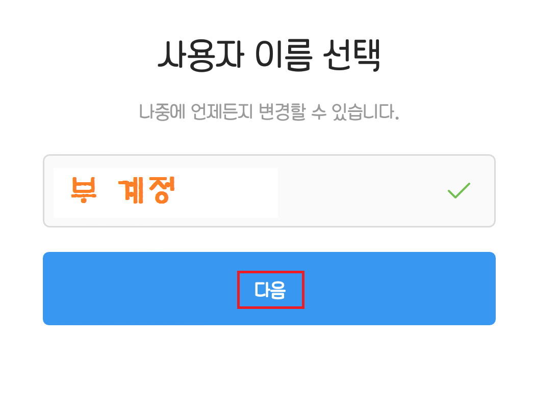 위는 또다른 부계를 만들 때 사용자 이름(아이디)를 만들고 난 뒤 바로 떴던 알림창입니다. 다른 진행 절차는 모두 생략되고 저렇게만 떴었는데, 이런 경우도 있다는 점 참고하세요.