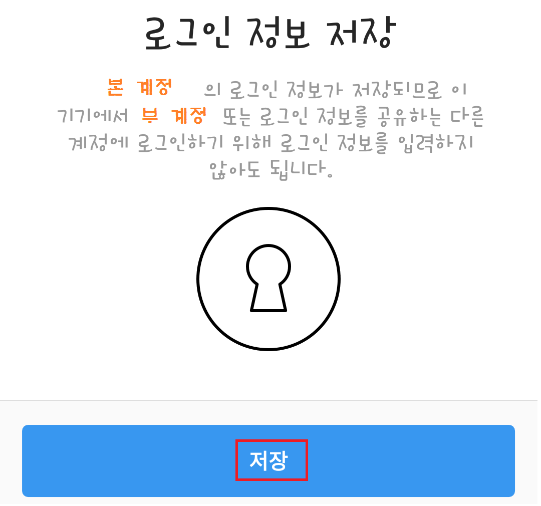 참고로 '기존 계정으로 로그인'은 따로 만들어 놓은 단일계정을 추가하거나 로그아웃했던 부계정들을 다시 추가할 때 이용하는 기능입니다.
