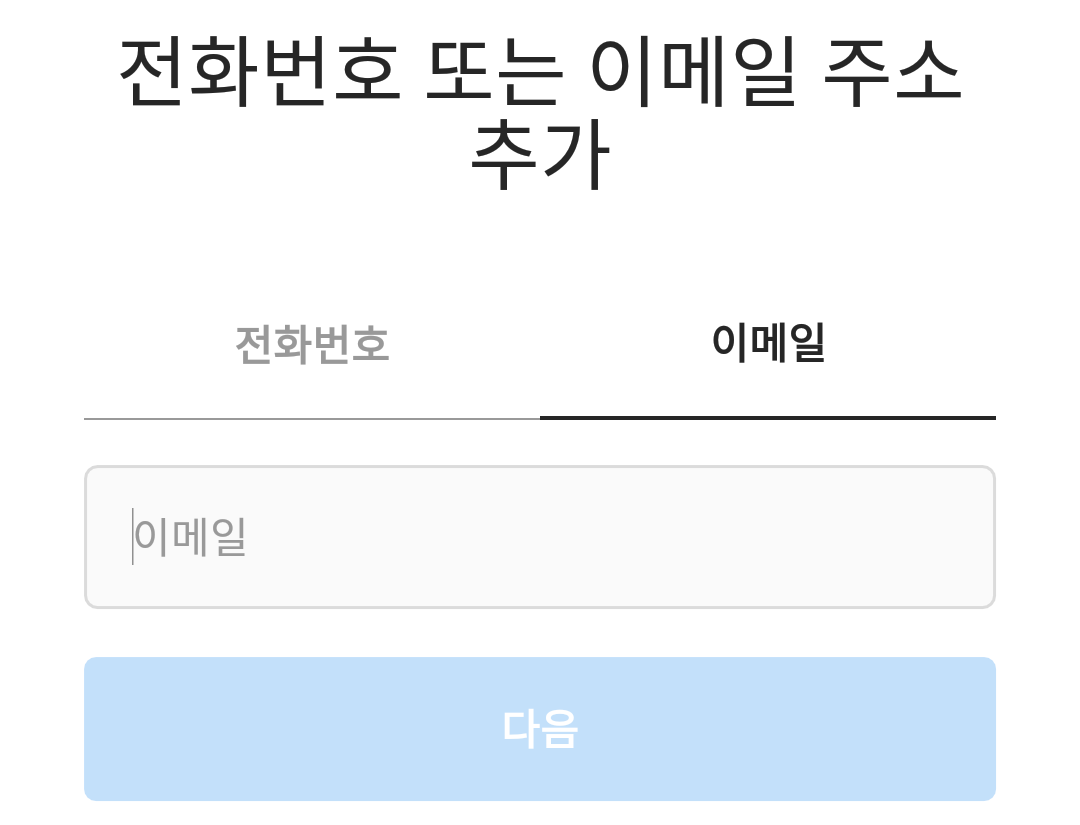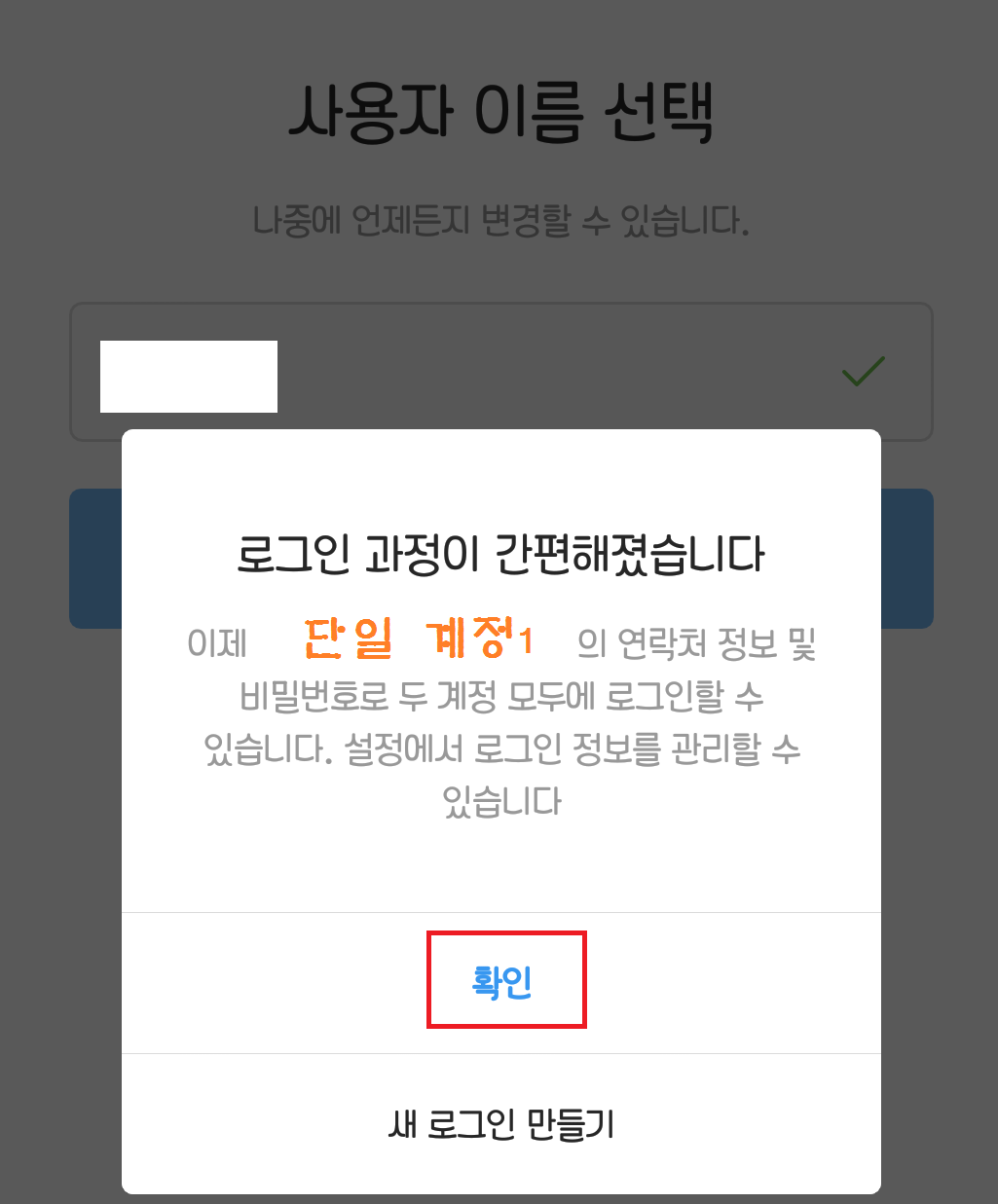 단일계정은 사용자이름(아이디)를 생성 후에 '새 로그인 만들기'로 들어가서 위의 과정을 따르시면 됩니다. 전화번호나 이메일 둘 중 하나를 입력하고, 비밀번호 6자리를 만들면 끝입니다.