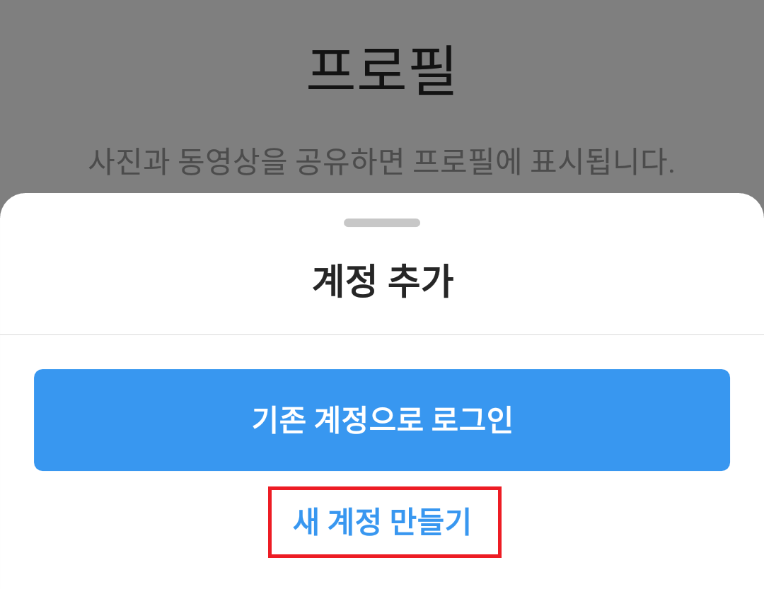 다음 단계에서는 '새 계정 만들기'로 들어갑니다.