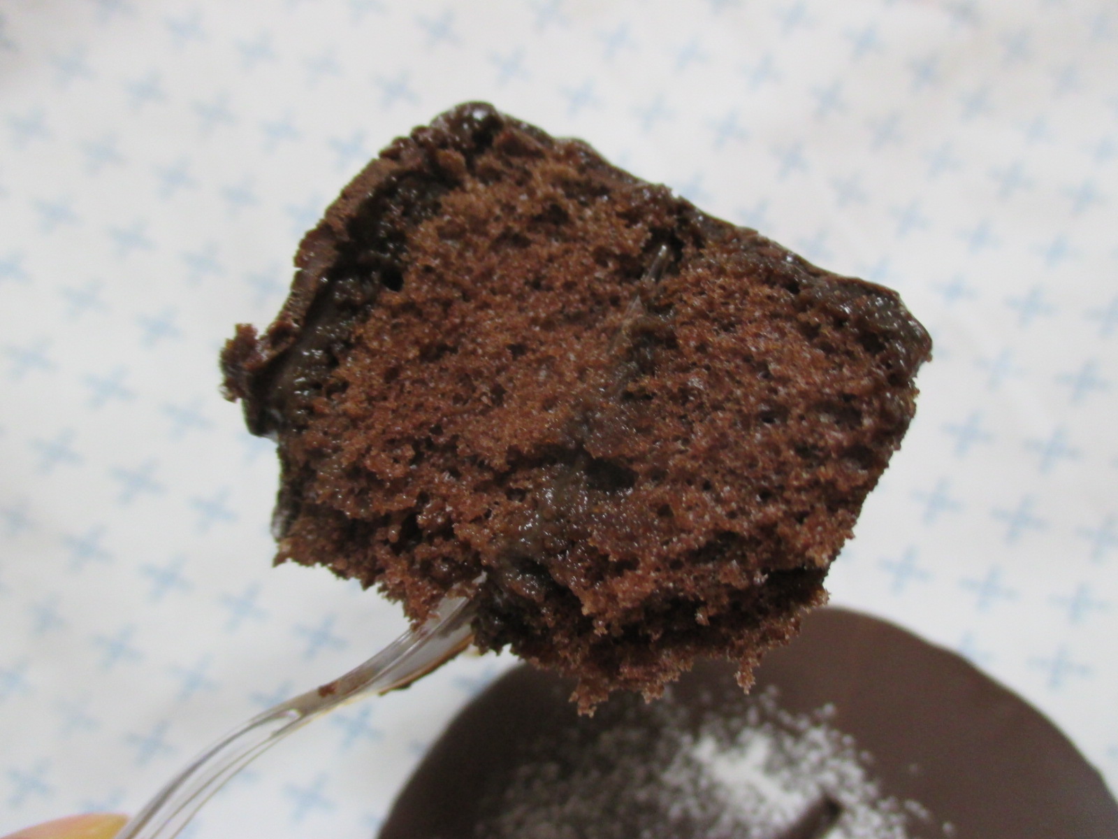 소심해서 푹 가르지는 못하고, 살짝 들춰보니 겉면의 초코 껍데기가 깨어지며 촉촉한 초코크림이 모습을 드러낸!