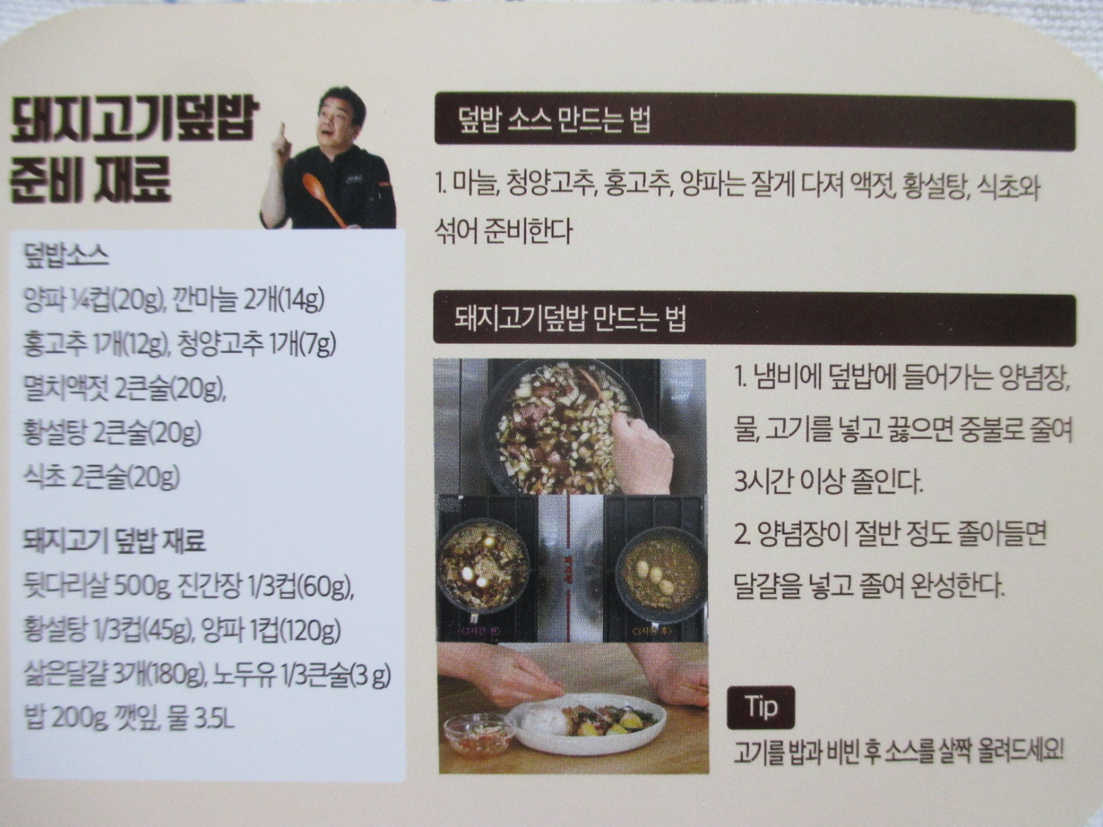 제품 정보가 적힌 종이 뒷편에는 돼지고기덮밥 레시피가 적혀 있으니 직접 만들어 보셔도 좋을 것 같아요.