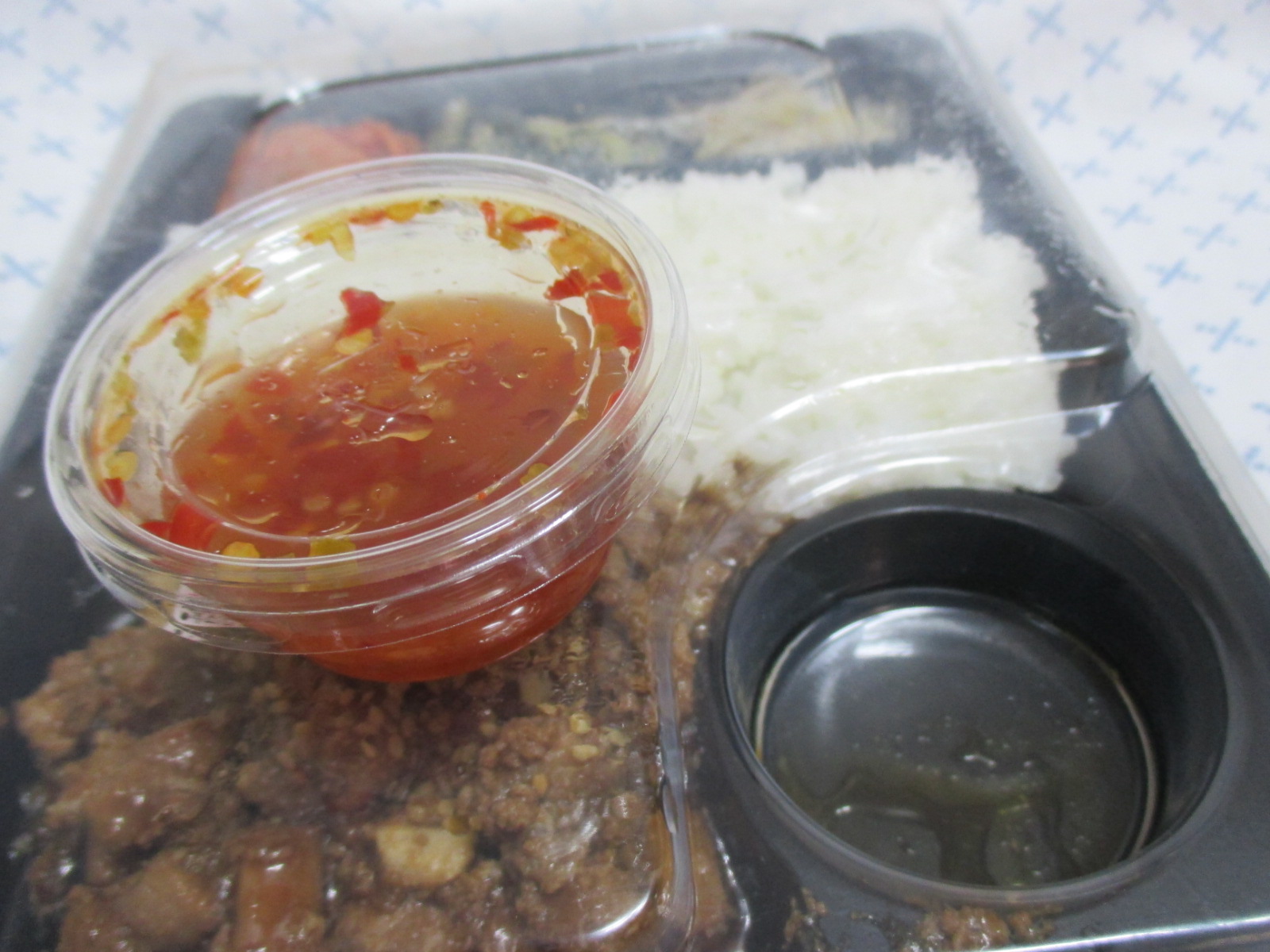 소스는 도시락 뚜껑 위에 들었던데, 뚜껑이 달린 케이스에 별도로 담겨있음에도 행여나 소스가 새면 다른 음식물에 영향을 줄까봐 위로 뺐나 봐요.