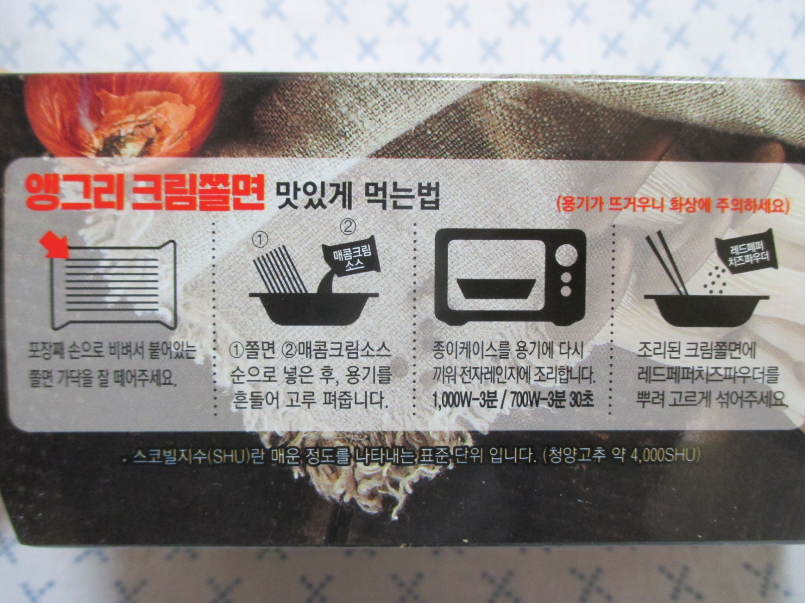 앵그리 크림 쫄면은 전자레인지 조리법을 따릅니다.