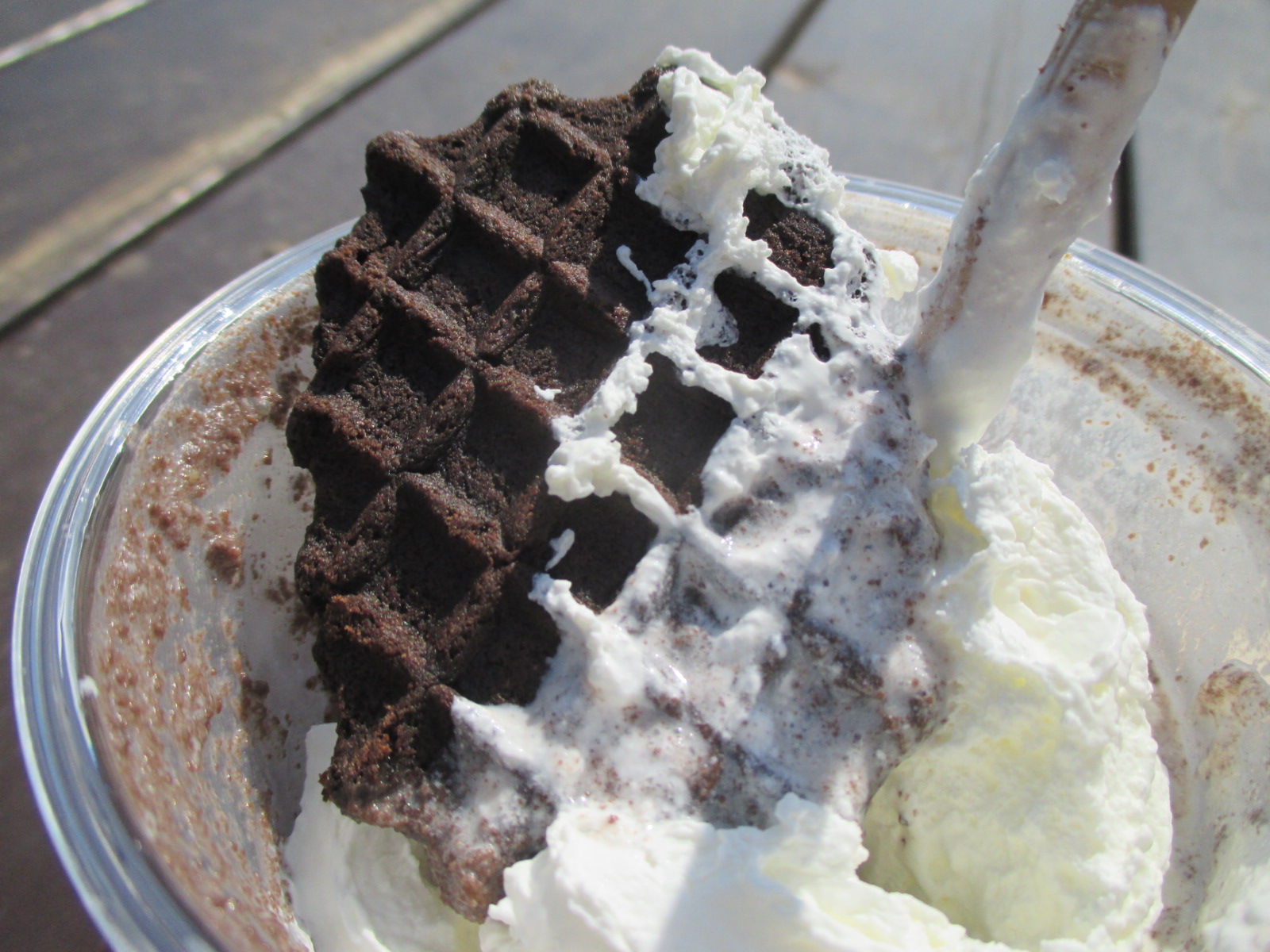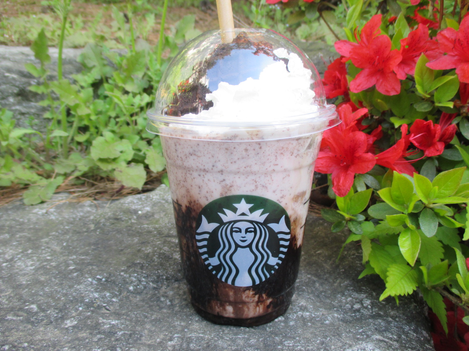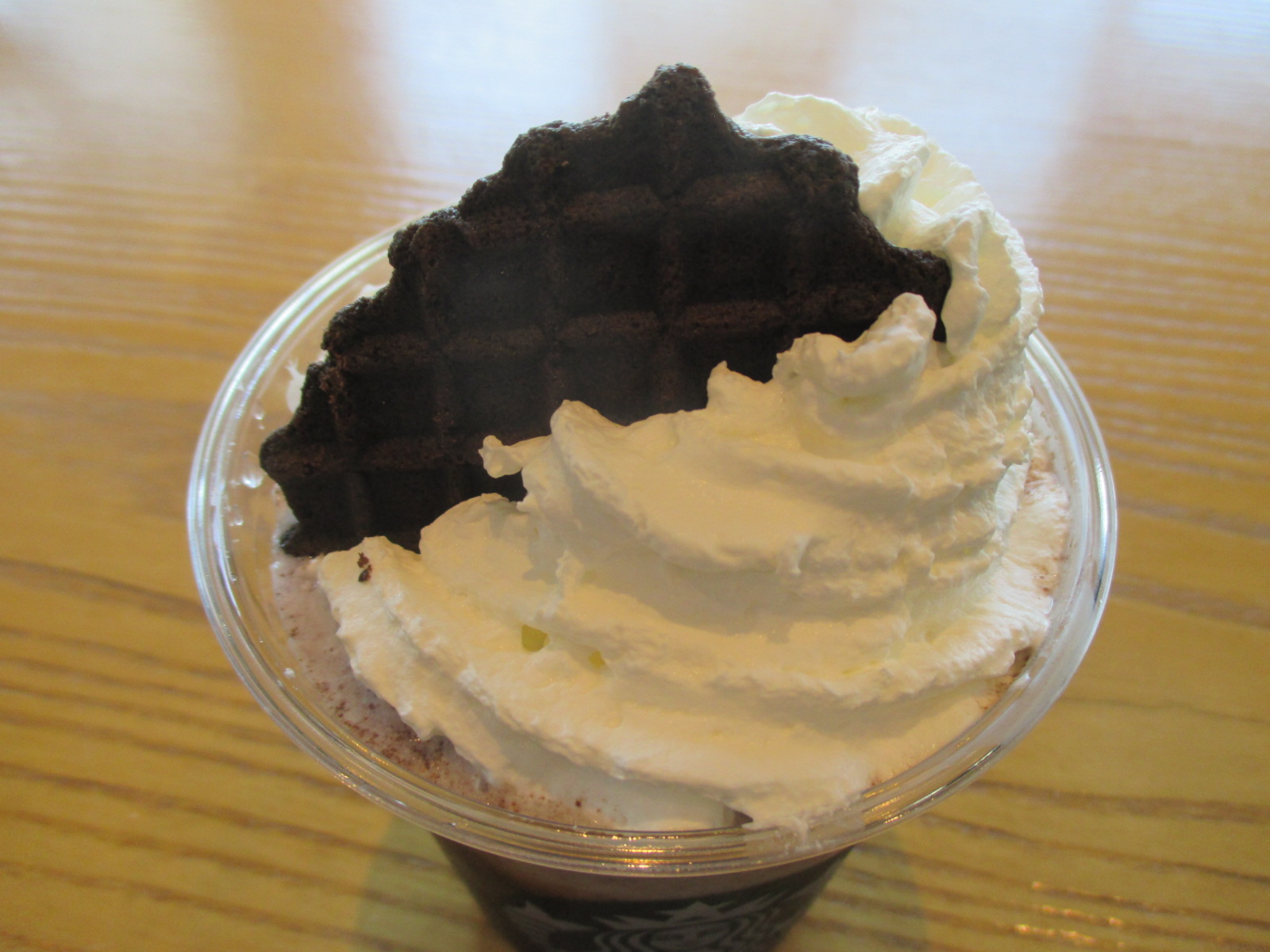 블랙 와플칩 크림 프라푸치노는 이름처럼 블랙 와플칩을 생크림 위에 꽂아주는데, 요 하나로 다른 음료보다 값어치가 좀 더 있어보이더라고요.ㅎㅎ