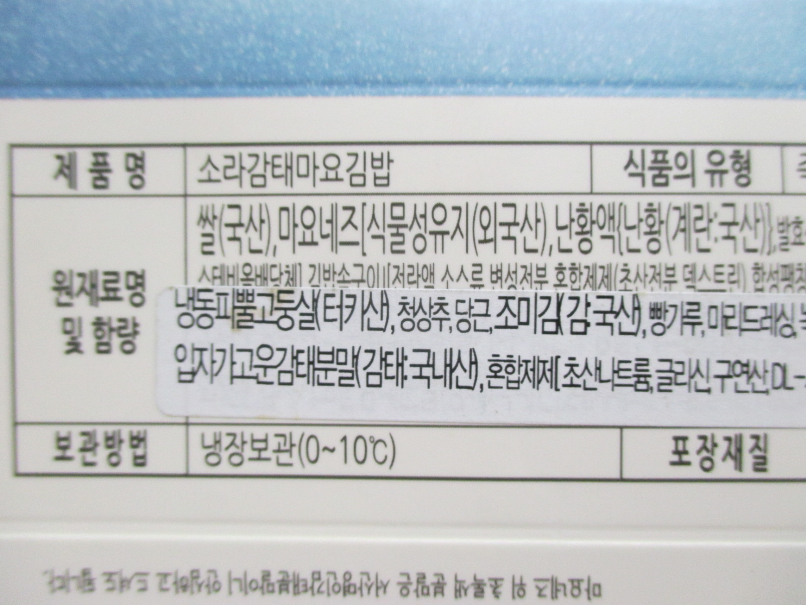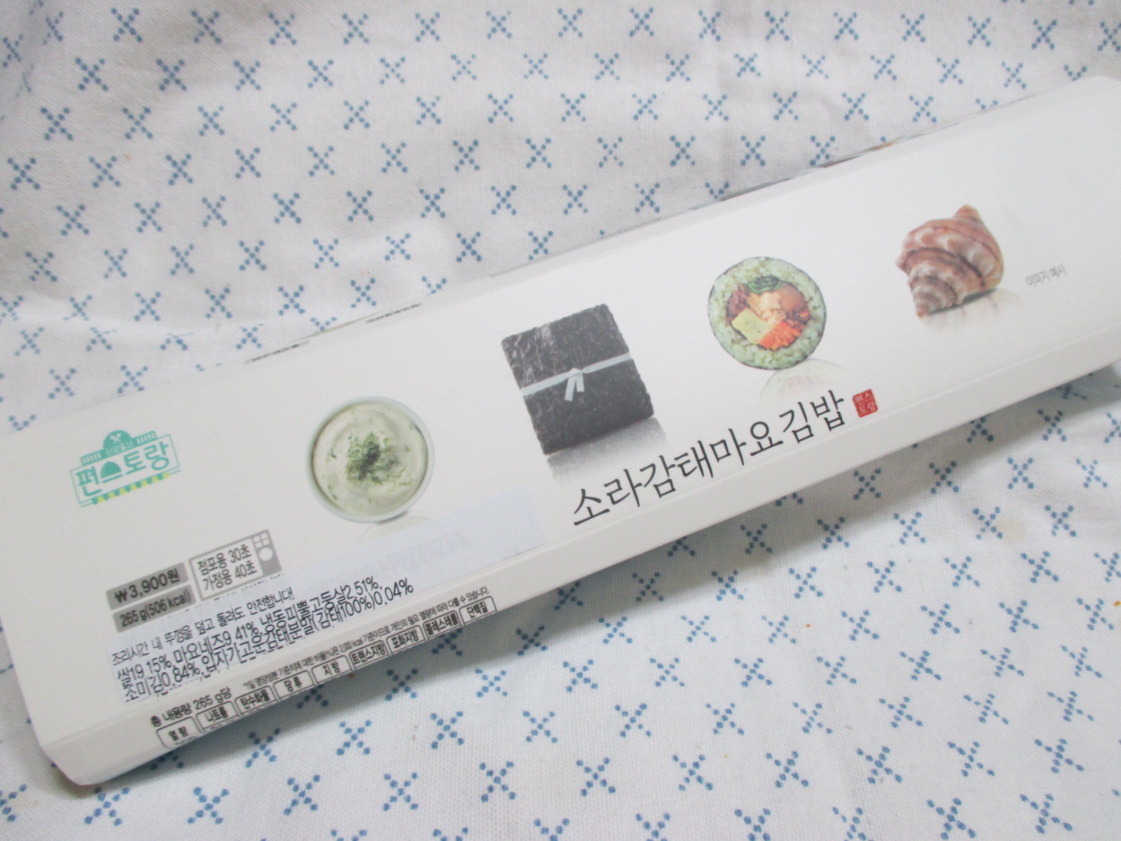 후기를 찾아보니 맛은 있다는 것 같습니다만, 당장은 구매 의사가 없고 나중에 세일하거나 할인 쿠폰 생기면 그때나 한 번 맛보려고요. 다소 아쉽지만 대신 그전에 자매품으로 함께 나온 소라감태마요김밥을 먼저 맛보았어요.