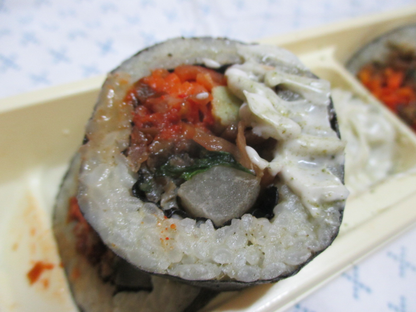 그냥 먹을 땐 좀 맛있는 일반 김밥 느낌인데, 마요네즈에 찍어 먹으면 고소함과 달콤함이 더해져 더욱 맛있어요.