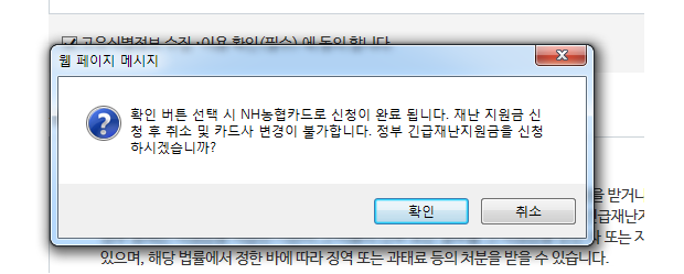 NH농협카드로 재난지원금 신청을 마치면 취소 및 다른 카드사로 변경할 수 없다는 점 유의하시고요,