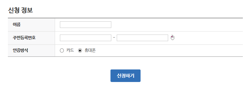 저는 PC로 신청을 하였고, 따라서 본 포스팅에서 사용된 캡쳐 이미지도 PC 버전이지만 절차와 내용은 셋 다 크게 다르지 않으므로 모바일웹이나 앱을 이용하실 분들도 충분히 참고 가능하십니다.
