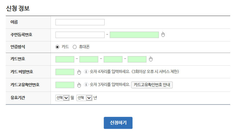 그럼 신청 정보 입력란이 나옵니다.