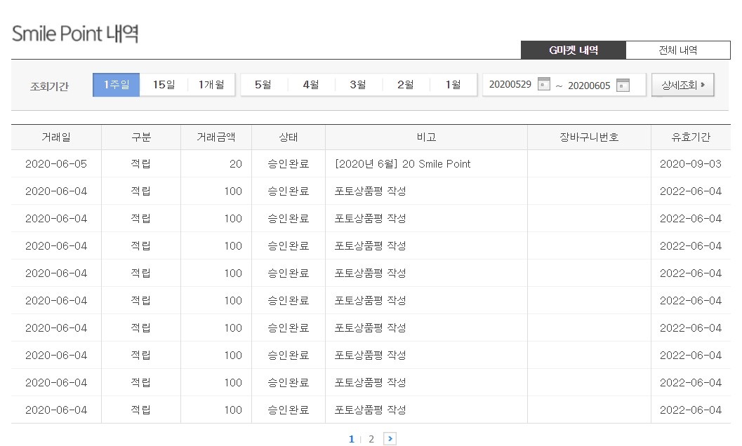 그럼 위와 같이 스마일포인트 적립일과 적립액은 물론 유효기간까지 한 눈에 알 수 있습니다.