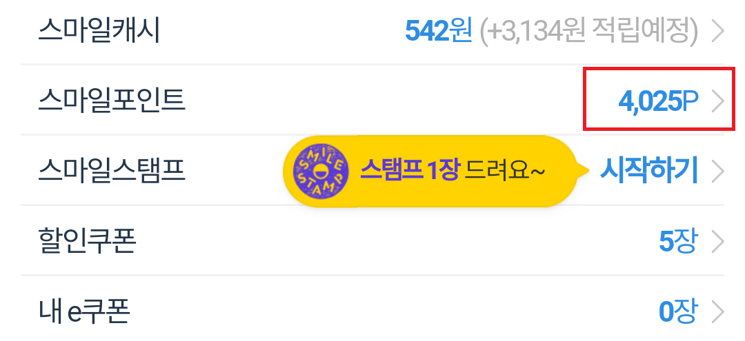 저는 현재 약 4,000포인트 모았는데요, 빨리 만포인트 모아서 스마일캐시로 전환하고 싶네요.^^