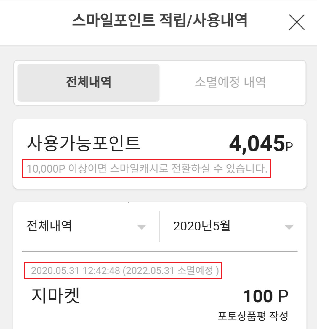 이때 한 가지 유의할 점은 스마일포인트는 유효기간이 있으므로 중간 중간 소멸예정인 포인트가 없는지 체크해주세요.