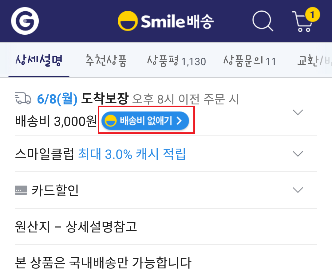 지마켓 '스마일배송'에서 내가 구매고자 하는 상품의 가격을 확인, 무료배송 쿠폰을 적용했을 때 최저가가 되거나 그와 엇비슷하게 나온다면 장바구니에 담아주세요.
